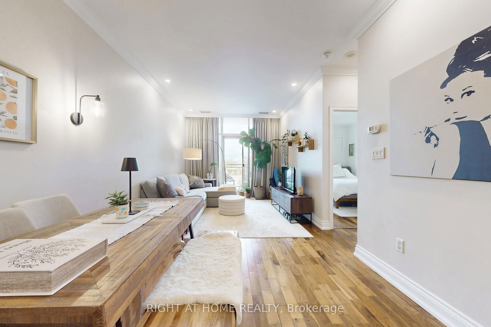 Beautifully Updated 1-Bedroom Condo in One of Leaside's Most Sought-After Buildings. Discover the perfect blend of comfort, space, and convenience at 1 Leaside Park Dr Unit 308 - a tastefully updated, bright and airy one-bedroom suite in a highly desirable Leaside residence. Surrounded by lush parks and green space, this oversized unit offers exceptional access to everything Leaside has to offer - including cafés, restaurants, grocery stores, and shopping - all just a short walk away. With transit right outside your door, you're only minutes to both subway lines, downtown Toronto, and the DVP. Inside, this meticulously maintained suite features 9-foot ceilings with elegant crown mouldings, engineered hardwood floors, and large windows that fill the space with natural light. The spacious kitchen boasts granite countertops, a breakfast bar, and plenty of storage - perfect for both cooking and entertaining. The generously sized bedroom offers a walk-in closet and room for a full bedroom set, while the ensuite laundry and storage room adds everyday convenience. An extra-large locker located on the same floor makes organization easy and accessible. Enjoy the comfort of a well-managed building with fantastic amenities and a strong sense of community.