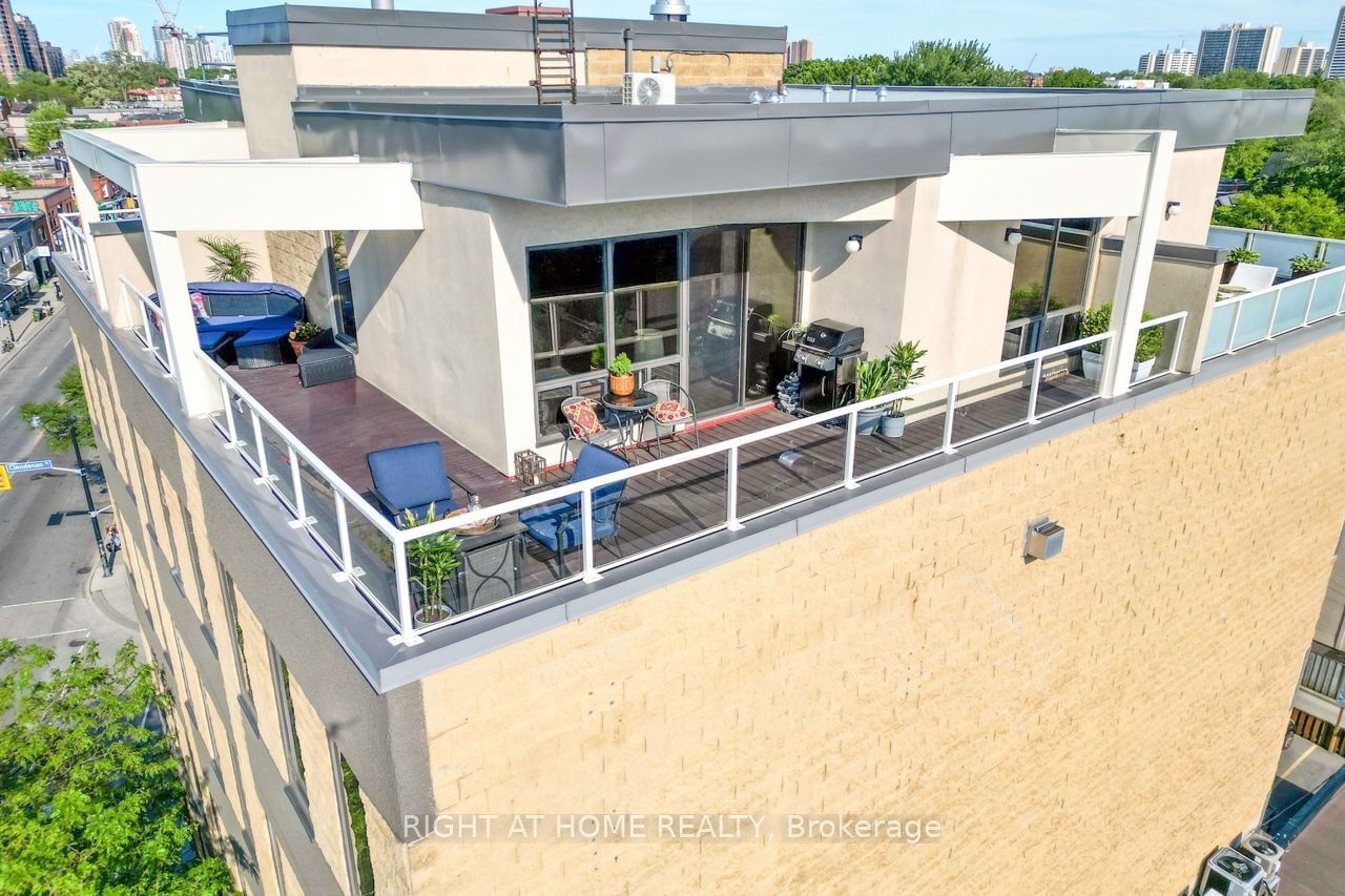 Welcome to this 2-storey penthouse suite with a 395 sq ft private rooftop terrace in the St Johns Road Lofts! Step into an entertainer's paradise in this truly open-concept living-dining-kitchen with soaring 10-foot ceilings, picture-perfect gallery wall, a centre island with a breakfast bar, a gas fireplace & wall-to-wall windows bathing the main floor in light. Invite your guests upstairs to your private backyard in the sky with a gas BBQ hookup and ample room for dining and lounging. Enjoy morning coffee with uninterrupted north views and cocktails with the later day sun facing west on your L-shaped terrace! When you are ready to step out, the trendy Junction awaits you. What are you looking for in a neighbourhood - great restaurants, craft breweries, cafes, live music, bookstores, art, parks, organic food, designer & antique furniture shops, and a vibrant community with yearly events? It's all here. And when you want the serenity of nature, High Park, the West Toronto Railpath and the Humber River are an easy cycle away.