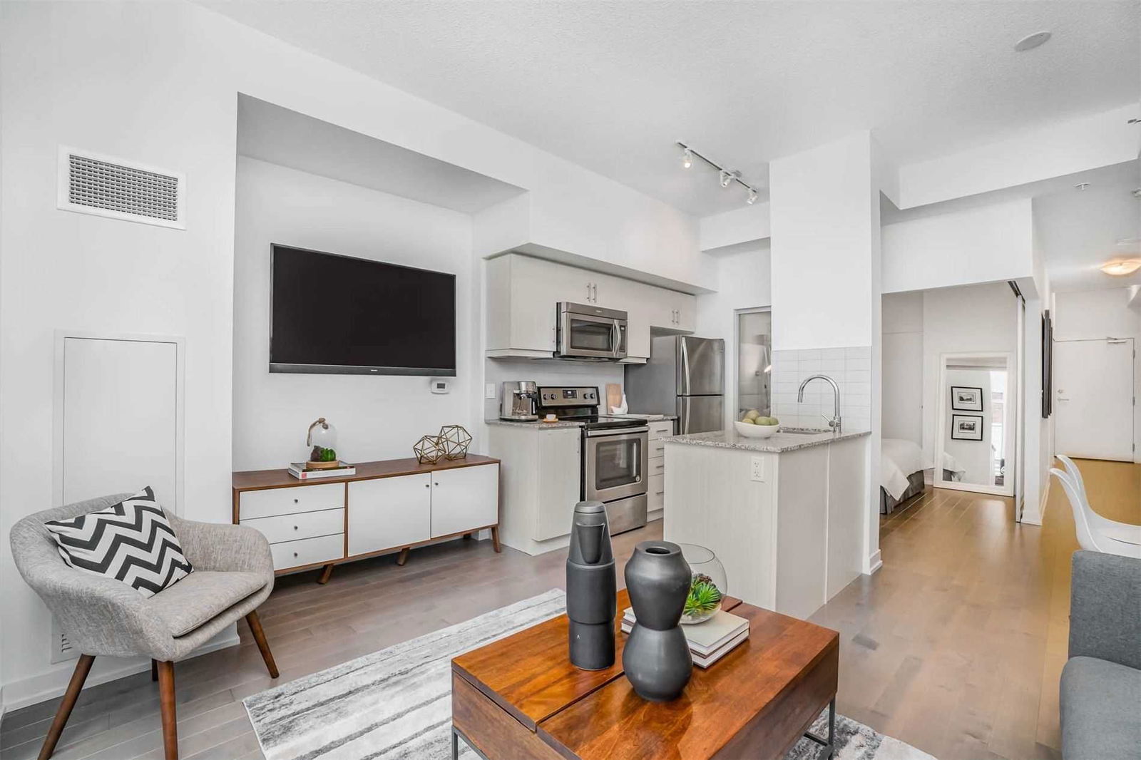 Great First Time Buyer Opportunity! 625 Sq Ft Of Living Space Downtown, Open Concept 1 Bdrm + Den, South Facing Balcony, 9.5 Ft Ceiling Heights, Engineered Hardwood Floors, S&S Appliances & Tile Backsplash In Kitchen, Rainforest Shower Head In Bath, Front Loading Washer/Dryer Ensuite & Large Double Closets In Master & Front Entry, Quiet Boutique Building Steps To Ttc, Chinatown, Kensington Market, Uoft, Ocad, Ago And All The Pleasures Of Downtown Life