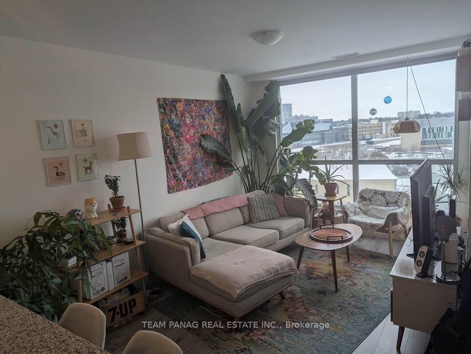 Welcome to 104 Garment Street! **Live, Work, Play in the Heart of Kitchener's Innovation District! ** Welcome to this upgraded 1 Bed, 1 Den, 1 Bath suite located with unobstructed panoramic views, this bright and spacious unit features 9 ft ceilings, floor-to-ceiling windows, and an open concept layout flooded with natural light. INCLUDES 1 PARKING AND 1 LOCKER. Rare and valuable ensuite storage adds functionality. Modern finishes throughout: upgraded laminate flooring, KitchenAid stainless steel appliances, front-load washer/dryer, upgraded countertops, and sleek glass shower doors in bathroom. Includes ensuite storage, one unassigned parking space and one Bike storage. Enjoy outstanding building amenities, including an excellent fitness center, theatre room, rooftop terrace with BBQs, party room, and boardroom style office space. Surrounded by green space, The historic Victoria Park, top rated restaurants, tech giants like Google, Communitech, and D2L, plus university and college campuses. Campuses for the University of Waterloo School of Pharmacy and McMaster's Medical School are located within walking distance. Steps to the LRT Central Station, GO Train/Bus, and GRT stop for easy access across Kitchener, Waterloo, and Toronto. Local grocery stores, eateries and cafes are within walking distance along King Street. This is downtown living tailored to your lifestyle. Steps to parks, the hospital, LRT, and more. A vibrant community of professionals awaits!