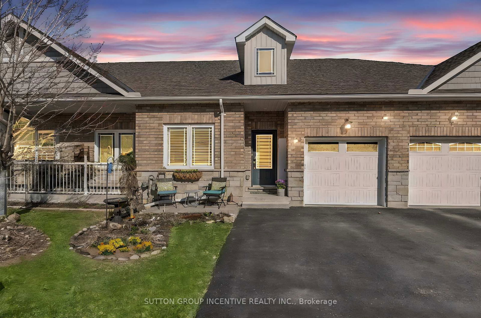 Exceptional Walk-Out Basement Bungalow Townhouse Welcome to this beautifully designed 2+1 bedroom bungalow townhouse in sought-after North Lake Village. High ceilings, neutral finishes, and abundant natural light create a warm, inviting space, while the bright walkout basement connects seamlessly to the outdoor space, perfect for relaxed living and entertaining. The open-concept main floor features a U-shaped kitchen with a breakfast bar for four, ample cabinetry, and an easy flow into the dining and living areas. The thoughtful split-bedroom layout offers privacy with two bedrooms including a stunning custom ensuite with matte black fixtures, heated floors, bluetooth-enabled vent fan with built-in speaker and a Kerdi barrier-free shower. The vanity, designed with aging at home in mind, can easily be changed with a traditional one by Sunshine Kitchen for added versatility. The main floor also features an additional 4-piece bathroom, adding flexibility and everyday comfort. Step outside to enjoy the 10 x 21 ft upper deck, bathed in morning sunshine ideal for coffee, quiet moments, or entertaining guests. The lower walkout patio opens to a lush, pollinator-friendly garden designed to attract butterflies and add year-round charm. These beautifully maintained gardens extend through the boulevard and community park to a serene retention pond with milkweed, inviting peaceful connection with nature.The fully finished basement offers a spacious recreation room, bedroom area, third 3pc bath, double closets, and a clever Murphy bed nook ideal for guests or hobbies. Additional features include inside garage entry, a garage lift for accessibility, California shutters, stylish lighting, washer, dryer, security system, camera, Kinetico water system with transferable warranty, bar fridge, and birdbath. Located in a quiet, friendly community near Lake Couchiching, the Millennium Trail, shopping, and with easy highway access this home truly has it all.
