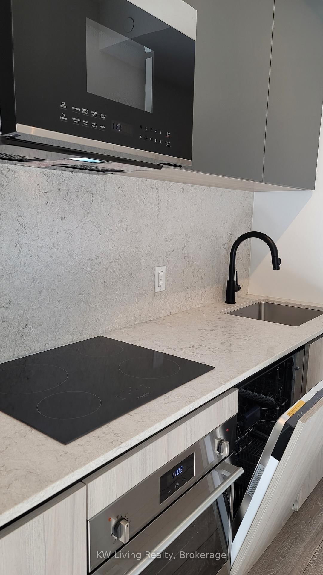 Location, location, location! Welcome to a beautifully designed suite in the heart of downtown at Peter & Adelaide, where style meets convenience. This well-appointed residence features a high-end modern kitchen complete with integrated appliances, sleek cabinetry, and a striking cascade stone backsplash that adds both elegance and visual impact-perfect for cooking, entertaining, or everyday living. Unwind in the spa-inspired washroom, thoughtfully designed with refined finishes and a calming, hotel-like atmosphere that brings a sense of luxury to your daily routine. Enjoy a flawless layout paired with unbeatable 100/100 walk and transit scores, placing the very best of the city at your doorstep. Steps to acclaimed restaurants, shopping, cafés, groceries, and nightlife. Surrounded by the energy of the Entertainment District with easy access to TKing West, Queen West, the Financial District, the PATH, and The Well. Ideal for professionals, end-users, or investors seeking a sophisticated downtown lifestyle.