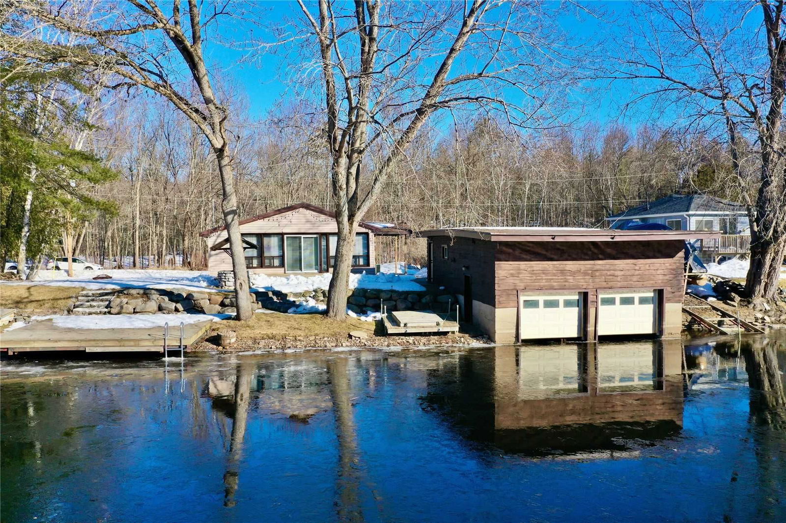 Fabulous Waterfront On The Severn River, Trent Waterway. 4 Season Cottage With 2 Bedrooms, Sleeps 6 Or More. Double Wet Boathouse With Bunkie, Sleeps 4. Propane F/P, Ductless A/C, Permanent Dock + Floating Dock, Deck Off Great Room, Garden Shed, Municipal Year-Round Road, High-Speed Internet, Close To Washago, Gravenhurst & Orillia. Great Waterfront For Swimming, Fishing, Boating, Kayaking, Paddleboarding. Close To Lock 42, Lake Couchiching.