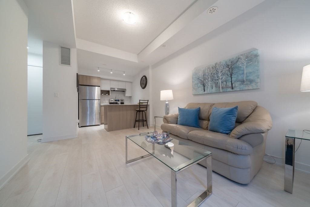 Greetings From Stationwest! A Must See Before It's Too Late. Proper One Bed One Bath Stacked Town Unit With Direct Entrance & Private Backyard/Terrace. Low Maintenance Fees! Located On The Less Busier Side Of Complex. Completed By Popular Builder 'Adi Developments'. Property Has High Ceilings, Laminate Flooring (Except New Carpet In Bedroom), Quartz Countertops, Gloss Tile Backsplash, Ceramic Tile Tub, And A High-Efficiency Toilet. Move-In Ready!