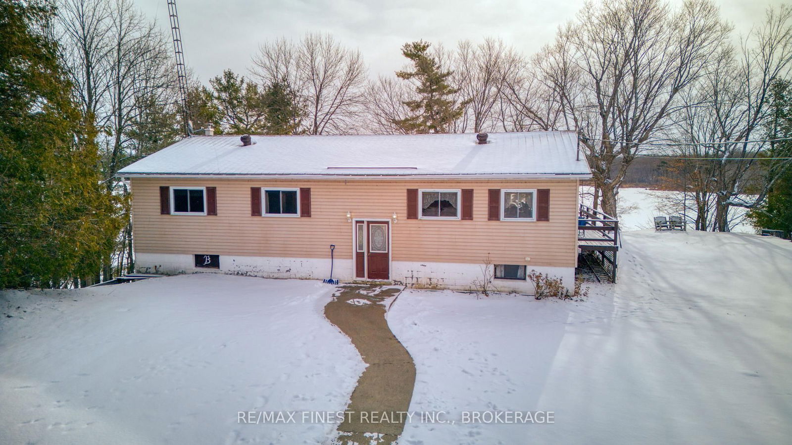 Sharbot Lake: Year-round waterfront Living on this 1.13 Acre home with 148' of Shoreline, offering a park like setting for children to play and families to gather. Lovingly tended Perennial Gardens highlight the already beautiful landscape. The location provides an exceptional view overlooking Hawley Bay on the East Basin of Sharbot Lake, with manageable stairs to the waterfront dock area. Great swimming off of the dock and ample room for docking your boat to explore the shores of Sharbot Lake. The home offers an open concept design with 3 Bedrooms and 2 bathrooms. A patio door on the Primary suite allows you to listen to the call of the loons while you fall asleep and the South east facing exposure lets you enjoy the morning sunset from the attached deck. A finished walk out basement with games room and den provides a space for hours of fun and entertainment for the whole family. Located minutes to the village of Sharbot Lake where you will find grocery store, pharmacy, bank, hardware store, cafe and restaurants, medical center, recreational activities and much more.