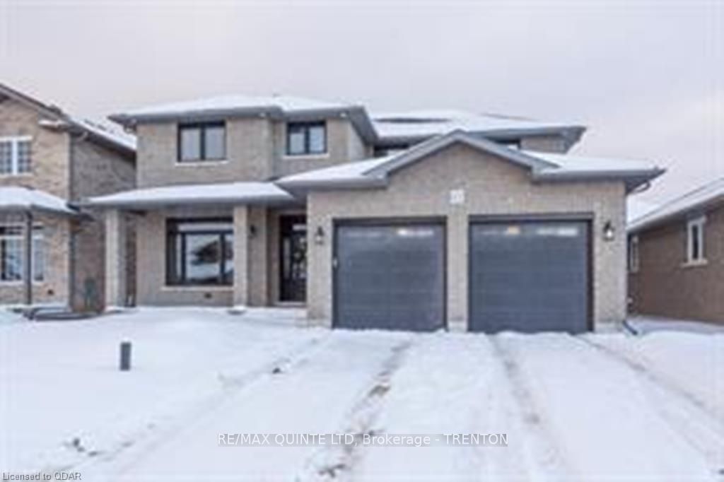 Looking for new construction but don't want to wait? This spectacular custom designed home has been constructed by one of Quinte's best builders Staikos Homes and still shines like new. Over 2500 square feet this home is loaded with upgrades from oak hardwood flooring, quartz counters, and 9 foot ceilings. Included are 7 appliances and 2 wall mounted TV's ($18,000). This inviting floor plan allows for 4 or 5 bdrm, with 3 baths. The heart of this home is the open concept kitchen and family space. The dream kitchen includes a huge 9ft walk in pantry and built-in wine fridge! The well placed laundry room with stainless steel washtub is on the second floor with 4 of the bedrooms. Gorgeous ensuite bath offers a luxurious soaker tub and custom tiled walk-in shower. A large basement w/ rough-in bathroom is waiting your finishes. The home features recessed lighting around the exterior. Sellers have prepaid for driveway to be paved and sod to be laid when weather permits.