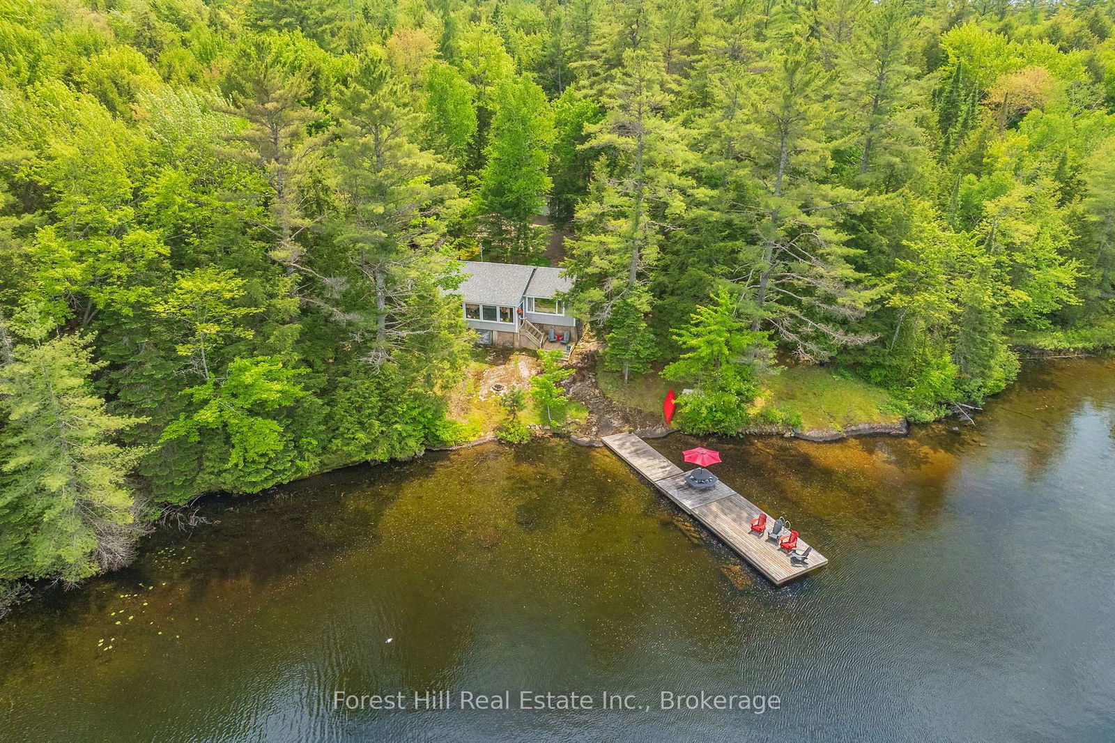 If privacy is what you seek, stop here and marvel the compelling features of this gem on a very desired lake in the heart of Muskoka! This idyllic property is beside and backs onto CROWN LAND! It is exceptionally PRIVATE! The loving care and maintenance by the owners are quite evident throughout the cottage and the property. Let your soul be warmed by all the warm pine floors, walls to ceiling, as you walk into the cottage. Your cooking talents will flow in the lovely, well-appointed country kitchen. Views of nature and cottage country wilderness through an abundance of windows. The open concept will keep conversations going and bring everyone together, as they lounge by the stone fireplace or in multiple areas of interior comfort. The Muskoka Room is the place to be when the sun goes down or any time one wants to sit beside the lake with a breeze coming through the room. The cottage is on a solid combined concrete/rock, full perimeter foundation. The exterior fieldstone fireplace chimney is an eye-catcher! There's a detached, double-car garage with a work bench and loft area for extra storage in addition to some outbuildings. The lot is a 10+ in terms of smooth rock granite and mature coniferous trees & walking trails with a real Algonquinesque vibe. Smooth rocky shore, ideal for wading and yet deep water at end of large, floating dock. The lake reaches 60' depth and supports bass & trout. Many properties on the lake are multi-generational. It is a real family-oriented lake community. Explore nearby trails on crown land for snowmobiling, hiking, ATVing, mountain biking, snowshoeing and much more. Conveniently close to the charming town of Dorset and approximately 2.5 hours from Toronto. You will find it difficult to leave this property and cottage! Start building your memories here!