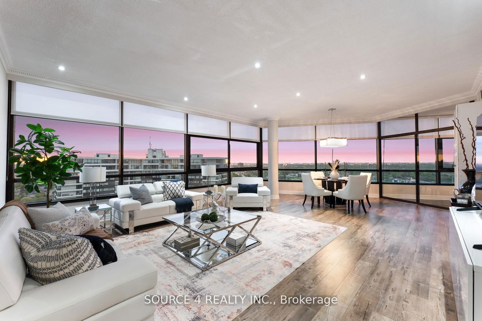 Welcome to an extraordinary, rarely offered two-storey penthouse suite nestled in the heart of Mississauga. Spanning nearly 3,300 square feet of beautifully upgraded living space, this exceptional 3 +1 bedroom, 2-bathroom residence redefines luxury condominium living. Set high above the city, this unique property offers breathtaking panoramic views of both the Mississauga and Toronto skylines, along with Lake Ontario, making it truly one of a kind.As you step inside, you're welcomed by a grand, oversized foyer that immediately sets the tone for the expansive layout that follows. The main level boasts generous principal rooms with soaring ceilings and an abundance of natural light. A sprawling living and dining area provides the perfect setting for entertaining or quiet evenings at home, while the upgraded finishes including premium flooring, designer lighting, and custom window treatments add a layer of refined sophistication.The modern kitchen is a chefs dream, complete with high-end stainless steel appliances, quartz countertops, and ample storage. A versatile den on the main floor offers the ideal space for a home office, creative studio, or additional guest bedroom perfect for todays flexible lifestyle needs.The second level is entirely dedicated to the luxurious primary suite, offering ultimate privacy and comfort. This serene retreat features a spacious bedroom area, a beautifully appointed ensuite bath, expansive closet space, and a dedicated laundry room for added convenience.With its unique two-level layout, incredible square footage, and prime location, this penthouse offers the rare opportunity to enjoy house-sized living with the ease of condo life. Located on the same floor as the buildings indoor swimming pool and spa, this penthouse offers the ultimate in luxury and convenience. Whether you're entertaining or relaxing, this is an unparalleled opportunity to own a sky-high haven that truly stands out from the rest. (Furnishings avail for sale).