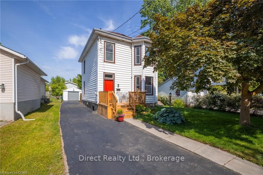 Virtual Tour Available. Enjoy Video in HD! Welcome to 133 Foster Ave in Belleville's beautiful Old East Hill! Modern amenities meet timeless charm in this home, which has received a contemporary refresh. On the main floor, the Foyer opens to the gracious living room with 10 ft ceilings, and large windows. This area is open to the kitchen/dining which enjoys eastern exposure for sunny, cheerful mornings. Please note the island is movable. Off the Kitchen you'll find a walk-in pantry with laundry, and a 2pc bath. This bright, convenient space leads to the beautiful deck, overlooking the private-feeling yard. There is a detached garage, perfect for storage. The deck has been recently refreshed and the yard is freshly sodded, with a veggie garden already started. Enjoy the lush atmosphere of mature trees and shrubs. Upstairs, there are 3 generous bedrooms and a four-pc bath. Enjoy the character of original hardwood floors, high baseboards, and lofty ceilings on both floors. Updates includ