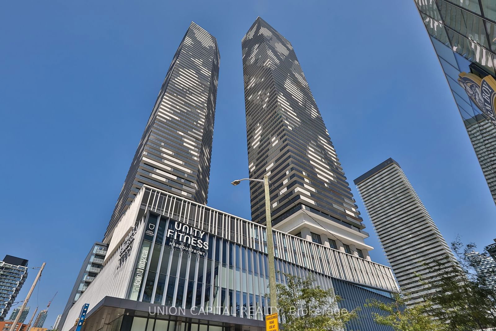 Experience luxurious living in the newest Sugar Wharf condo on the picturesque lakefront by Menkes. This expansive 1+den unit boasts 2 baths and is ideally situated on a high floor, offering breathtaking unobstructed views. The den effortlessly converts into a comfortable SECOND bedroom, maximizing space and flexibility. Revel in the elegance of laminate flooring throughout, complemented by floor-to-ceiling windows that invite abundant natural light into the open-concept layout. Step onto the spacious balcony to savor refreshing breezes and panoramic vistas. Perfectly positioned just minutes from Sugar Beach, Union Station, Loblaws, LCBO, St. Lawrence Market, George Brown College, and the bustling Financial and Entertainment Districts, ensuring unparalleled convenience and lifestyle.