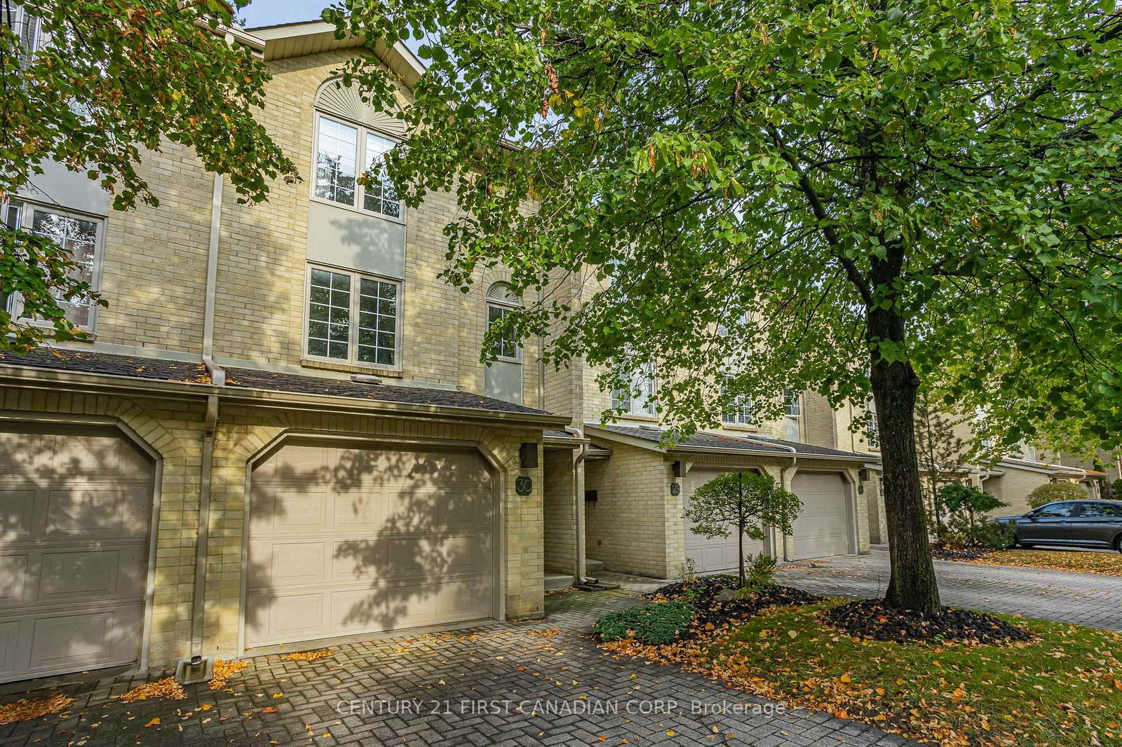 Welcome to 1399 Commissioners Road W., Unit 30, in the sought-after Byron neighbourhood of London. This three-storey townhome offers two spacious bedrooms, 1.5 bathrooms, and a single-car garage. The entry level features a versatile den or office space finished with luxury vinyl plank and provides access to a private patio through updated patio doors. The main floor showcases an open-concept design with hardwood flooring, a gas fireplace, and a private outdoor balcony space through updated patio doors off the living room. A central open staircase with a skylight from the third floor, combined with an abundance of windows throughout, fills the home with natural light. Upstairs, you'll find two generously sized bedrooms and a beautifully renovated three-piece bathroom completed with heated floors, tiled walls and floors, Grohe fixtures, and a 20 rainfall shower. The half bathroom on the main floor also includes Grohe fixtures and a gorgeous tile feature wall. The second and third floors are finished with hardwood, while the furnace room floor has been epoxied to match the luxury vinyl plank flooring. The home is further enhanced by an owned tankless water heater, increasing efficiency and comfort. The garage is finished with Gladiator Garage slat walls, baseboards, and an epoxy floor, offering excellent storage and durability. This condo community backs onto the Thames River and is just minutes on foot to Springbank Park and the heart of Byron, making it the perfect combination of nature, convenience, and lifestyle.