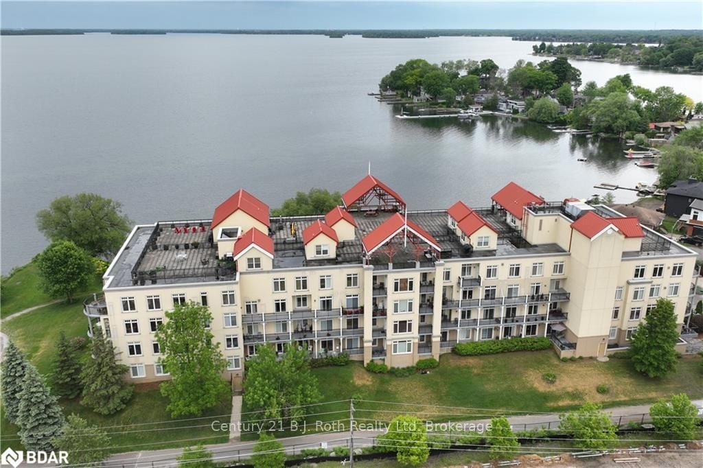 Gorgeous, spacious 1,445 sq. ft. 3 bedroom + office/den unit in the highly sought after Elgin Bay Club executive condominium on the shores of Lake Couchiching. Move in ready, clean, bright and well maintained with lots of room for entertaining. Open concept living/dining room with gleaming hardwood floors, gas fireplace and walk out to an expansive balcony. Large primary bedroom with ensuite bath, walk out to balcony and walk-in closet. Kitchen comes with a gas stove and granite countertops. Secure building with underground parking, storage locker, large inviting lobby, roof top terrace, party room, and some docks on the lake which may become available. Waterfront re-development plans are already underway in Orillia, which will make an already great and vibrant location, the best for maintenance free living on the lake. If looking for an investment property, this unit was previously rented for $2,450 per month. Park, beach, marina, downtown, restaurants, cafes and shops are all within walking distance.