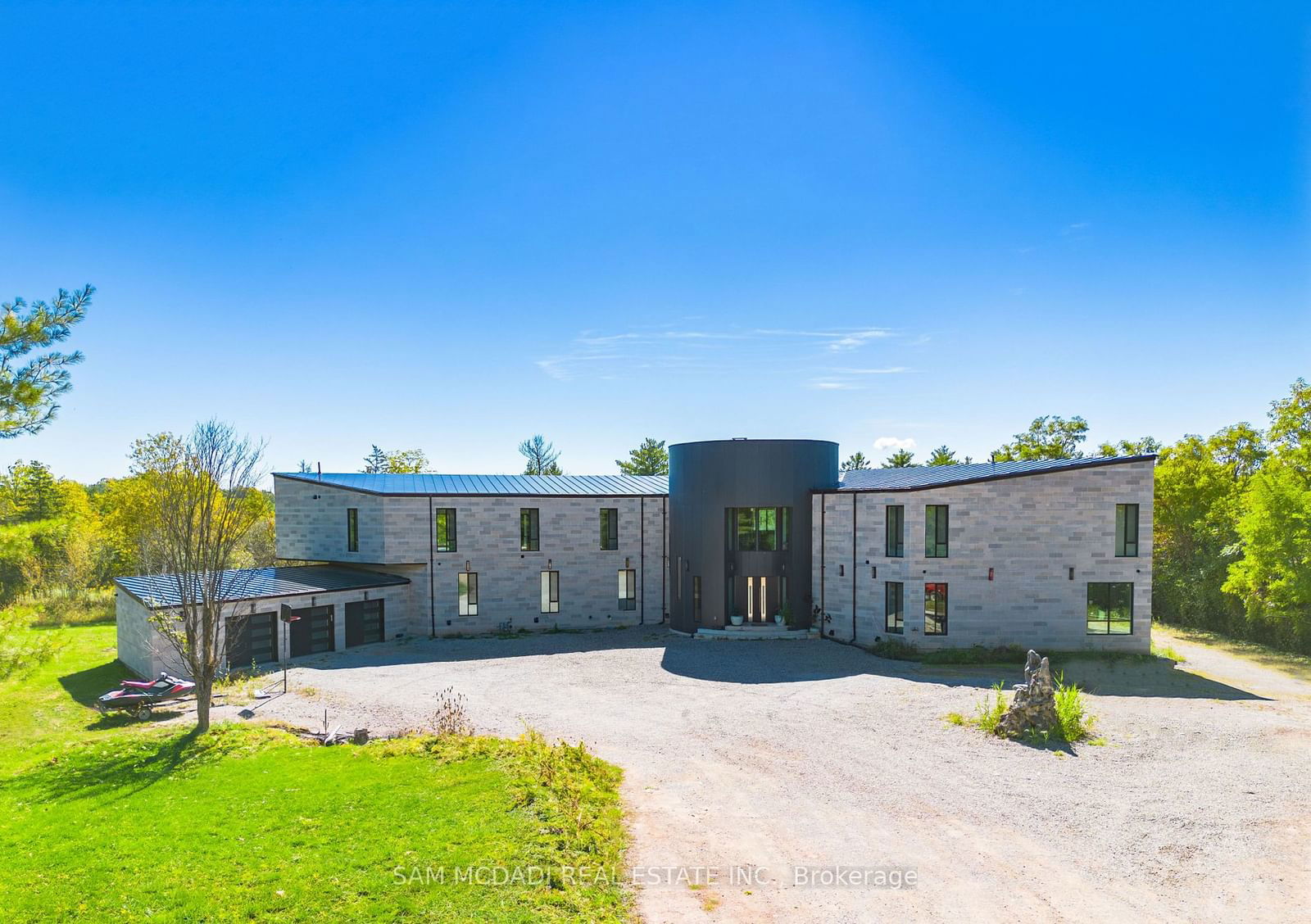 Discover this one-of-a-kind architectural masterpiece nestled in the serene community of Terra Cotta. Perfectly situated on a sprawling 9.585-acre lot, this ultra-modern residence offers a sleek facade with a grand circular entrance across its almost 10,000SF living interior. The grand foyer exudes sophistication with its stunning natural stone floors, accentuated by warm wooden paneling along its curved walls creating an awe-inspiring first impression. Principal rooms boast modern detailing with glistening LED pot lights, soaring double-height ceilings, gleaming hardwood floors and large triple-pane windows throughout that allow natural light to flood the home. Boasting radiant heated floors on all 3 levels, plus elegant stone surround gas fireplaces, this residence is meticulously designed for warmth and comfort all year round. Step into the kitchen that blends splendor w/ functionality. The chef-inspired kitchen features pendant lights, custom built-in shelves, a large granite counter centre island, and top-of-the-line stainless steel appliances - all while large windows frame a beautiful view of the backyard. Enjoy the views of lush greenery, perfect for those seeking a balance of outdoor living, privacy and tranquility. The gracefully designed flute wall paneling staircase leads to the Owner's suite which serves as a peaceful haven to unwind after a long day. The space is elevated by a lavish 5 pc ensuites with a hot tub and a spacious walk-in closet. On this level, you will find 5 additional grand bedrooms boasting a closet, their ensuites and each with a balcony. The lower level of this beautiful residence was designed for entertainment with a large rec room, a wet bar, a fireplace, 2 additional 4-piece washrooms and a bonus room that serves as a blank canvas for you to personalize. 14020 Winston Churchill Blvd is a testament to keen attention to design and details with the convenience of a 3-car garage and ample driveway parking to host family and friends.
