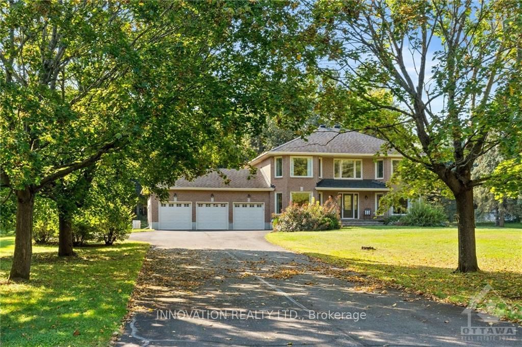Flooring: Tile, Private and beautifully treed 2-acre lot in rural Kanata, backing onto wooded part of Loch March Golf Course, no rear neighbours. Large executive all-brick immaculate home with 4 bedrooms and 2 and a half baths. Gorgeous renovated kitchen with plenty of cupboards and counterspace. Sleek stainless steel appliances, granite counters, large island, plenty of pullouts. Spacious family room with gas fireplace and gorgeous sunroom flooded with natural light leading to a large composite easy-care deck and large interlock patio. Entertaining sized living and dining plus a main floor home office and updated powder room. Upstairs you'll find 4 bedrooms including a large primary room with walk-in closet and updated ensuite bath with separate glass shower enclosure, 2 sinks and heated floors. Energy efficient and environmentally friendly geothermal heating and cooling. Windows (2020), front door (2020), standby generator (2018), furnace (2008), roof (2008)., Flooring: Hardwood, Flooring: Carpet Wall To Wall
