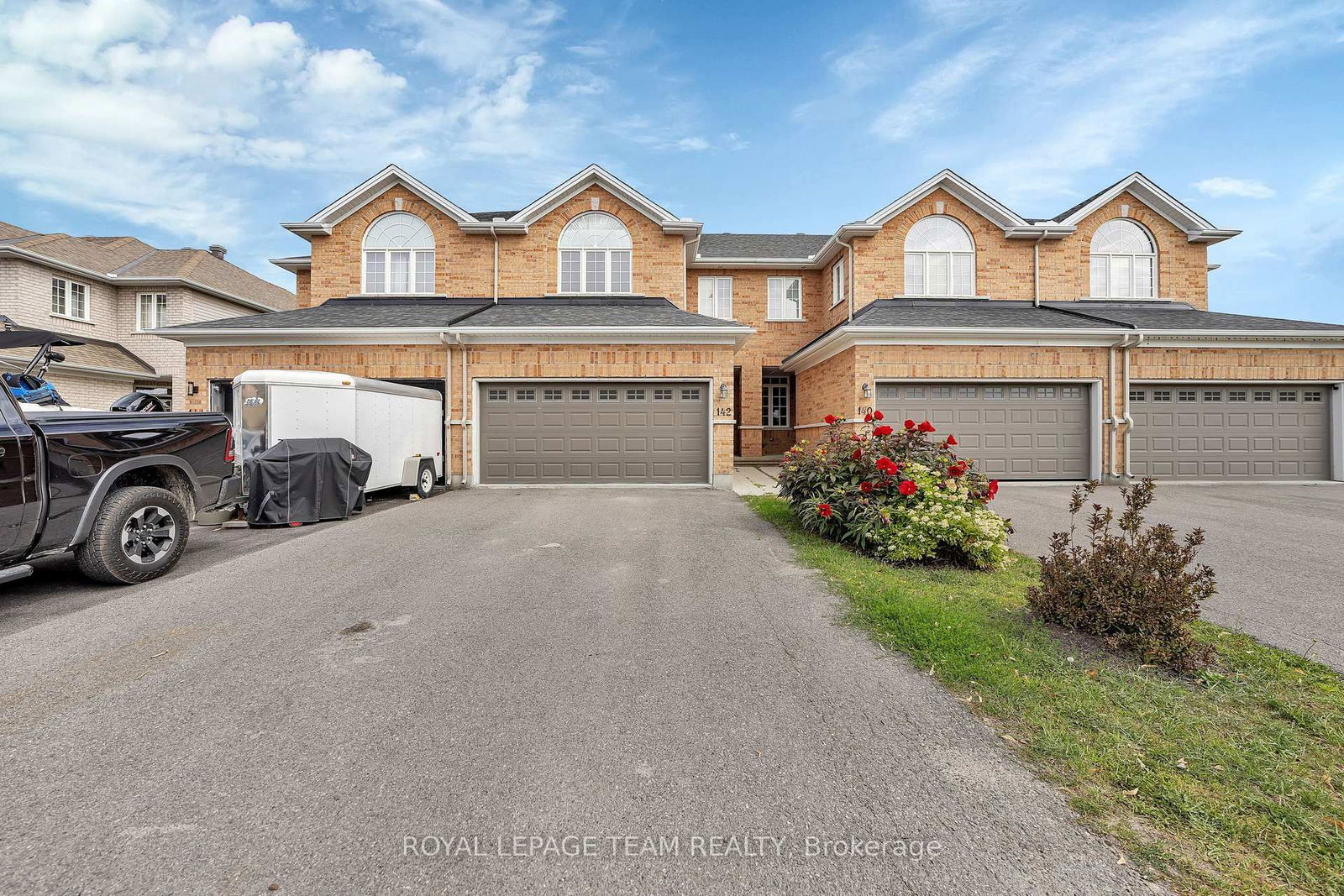 Welcome to 142 Desmond Trudeau, a rare executive townhome offering a double garage, 5 bedrooms, and 4 bathrooms. With over 2,150 sq ft of bright, open living space above grade plus a fully finished basement, this home is freshly painted and truly move-in ready.The main floor features hardwood throughout, a chefs eat-in kitchen with stainless steel appliances, gas stove, and stylish backsplash, opening seamlessly to the family room with a cozy gas fireplace. A spacious dining room with upgraded lighting creates the perfect setting for gatherings. Upstairs, you'll find four generous bedrooms, including a primary retreat with vaulted ceilings, walk-in closet, and full ensuite, along with the convenience of an upstairs laundry room.The lower level has been thoughtfully finished to include a fifth bedroom, full bathroom, and recreation space, while still leaving plenty of room for storage. Step outside to your large deck and enjoy peaceful views of the park and pond, a beautiful backdrop for relaxing or entertaining. Don't miss the opportunity to make this exceptional property yours! *Some photos have been virtually staged*
