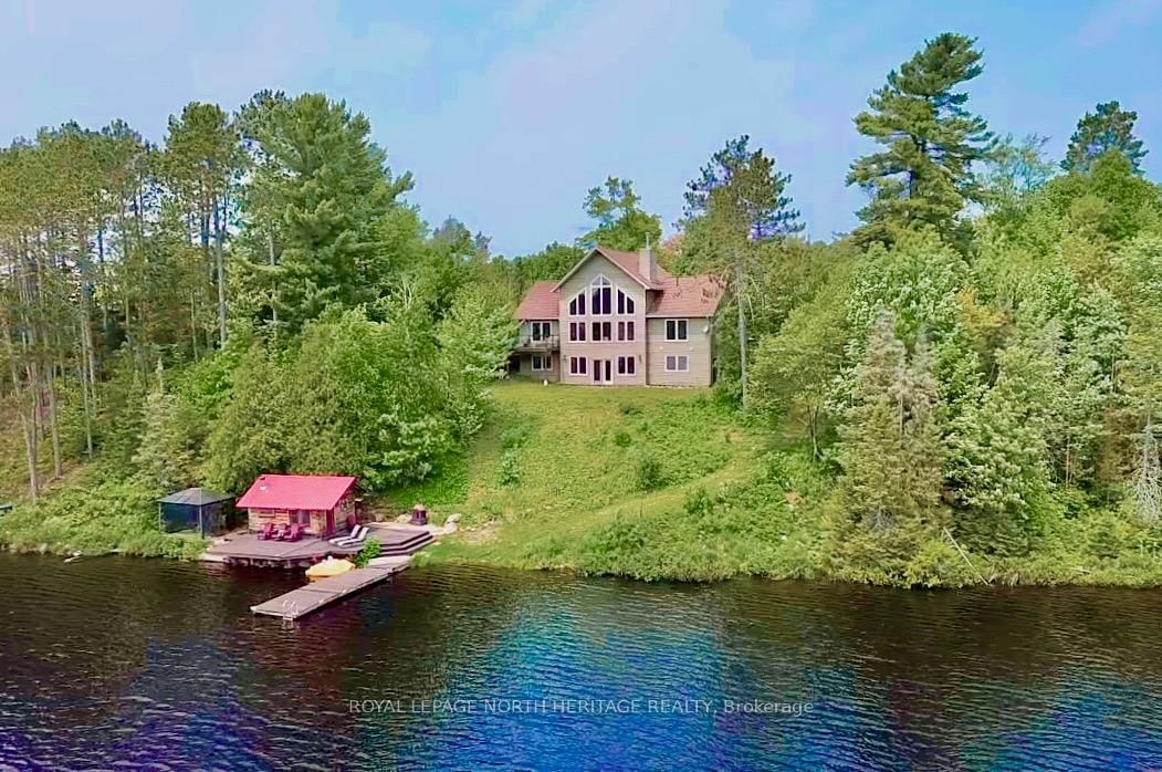 Escape to your private lakeside retreat on the peaceful shores of Skill Lake. Nestled on 2.5 acres of pristine natural beauty, this custom-built home offers a rare blend of rustic charm and modern comfort. Step inside to soaring 15-foot pine, vaulted ceilings and expansive windows that flood the open-concept living space with natural light and stunning lake views. A striking stone fireplace anchors the main living area, complemented by rich, textured hardwood floors throughout. The heart of the home has a spacious kitchen, complete with ash cabinets and a large center island perfect for entertaining and a cozy loft that overlooks the main floor, offering a quiet space to relax or work. Wake up every morning to peaceful views of calm waters and towering pines right from the primary bedroom. Downstairs, the walk-out lower level features in-floor heating throughout, a one of a kind rustic-style bathroom and laundry area, and a second bedroom. A versatile bonus room makes the ideal space for a home gym or guest area, while the extra-large mudroom-with double doors leading outdoors-adds practical convenience for all seasons. Enjoy family barbeques on the wraparound deck off the dining area, or unwind in the log sauna near the waters edge. A 28x36 detached garage provides ample space for vehicles, tools, or recreational toys. Just 30 minutes from Sudbury and steps from OFSC snowmobile trails. Whether you're looking for a year-round residence or a seasonal getaway, this Skill Lake gem offers unmatched peace, privacy, and access to outdoor adventure. **INTERBOARD LISTING: SUDBURY REAL ESTATE BOARD**