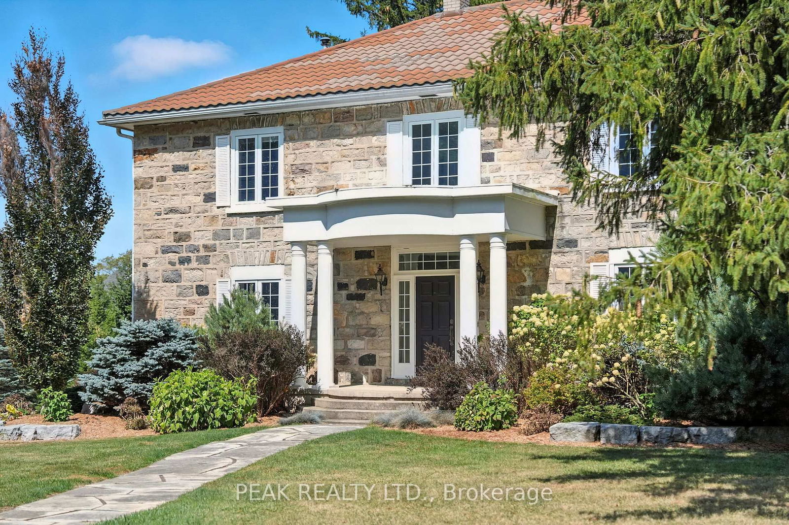 Here is your opportunity to own a piece of history on the Grand River in Paris, Ontario. This 2-story, Landmark, georgian style, original stone home is One of a Kind! Sitting on over 3 acres in a picture perfect setting. An abundance of trees creates natural privacy. This stately home features large windows deeply set within thick stone walls, open stone feature walls, large baseboards and original archways that highlight past workmanship. This home has had many renovations including upgraded attic insulation, newer furnace and water heater as well as updates and/or complete renovations to most rooms. Including two ensuites, the house has total 5 bathrooms. The home includes a finished basement with both inside and outside entries and has potential in-law capability. Bedrooms are large and two have ensuites. The open kitchen/living area has large island, reclaimed hardwood floors, propane wood stove and separate pantry. The added sunroom has its own heat and air conditioning as well as a wood burning stove. The home has total of 4 fireplaces. On hot days, enjoy a dip in the large inground swimming pool which is located off the custom built garage with upper living space. The garage easily fits 4 or more cars, has heat and a/c and features a large upper living space with 2 pc bath. This building could easily be converted to separate residence. Beyond this, a lane leads to the walking trail and river, with access to the water for fishing or canoeing. Poolhouse has its own 2 pc bath as well, and another storage shed also on the property. **INTERBOARD LISTING: CORNERSTONE ASSOCIATION OF REALTORS**