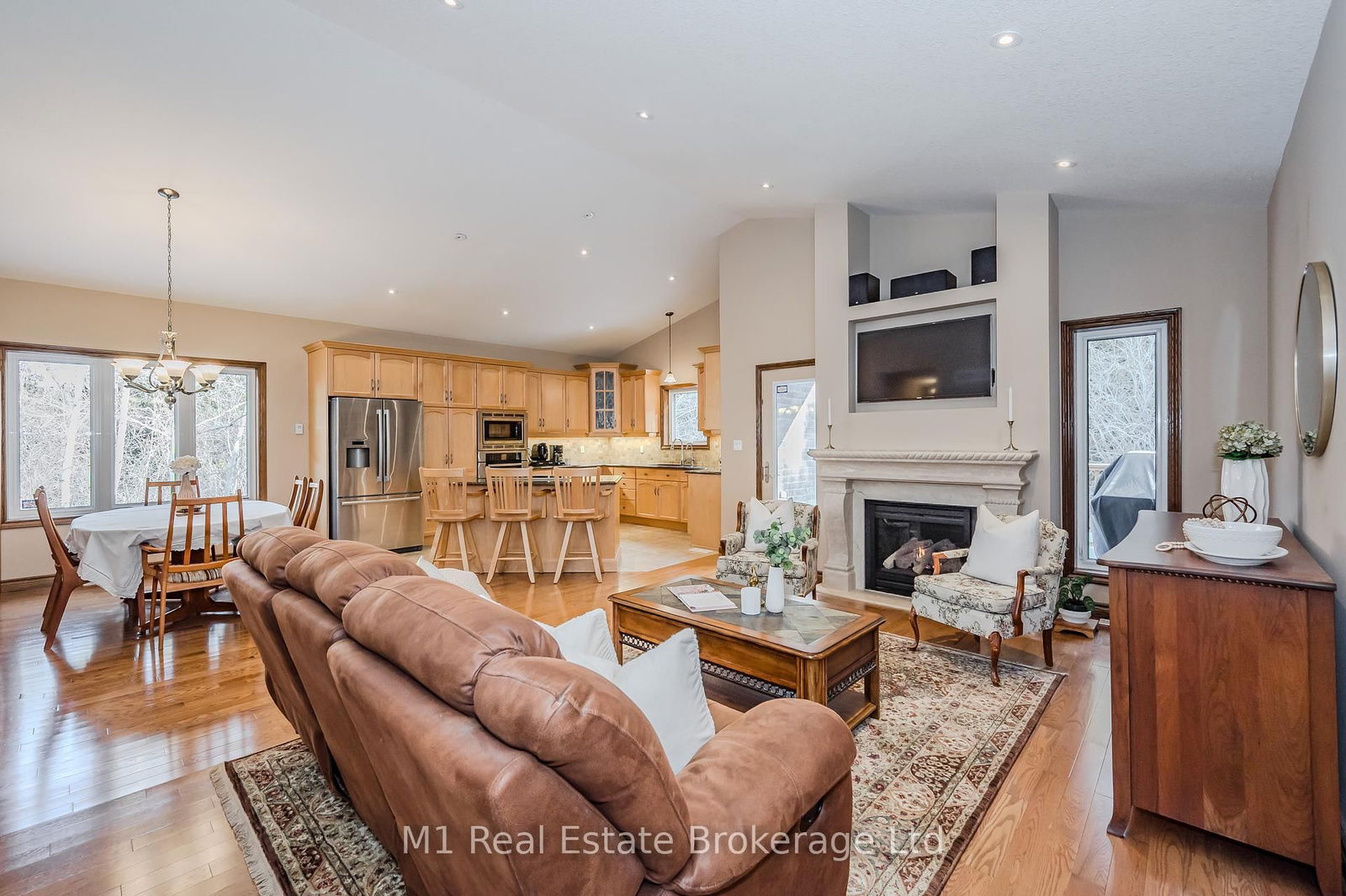 Nestled in the sought-after Valley Road Estates in Guelphs desirable South End, this beautifully crafted custom bungalow offers a seamless blend of elegance, comfort, and functionality. With 3+2 bedrooms and 3 full bathrooms, this home is thoughtfully designed for both everyday living and entertaining. At the heart of the home is the expansive Great Room, where natural light floods through large windows and a cozy gas fireplace anchors the space. The kitchen is a chefs delight, featuring rich maple cabinetry, gleaming granite countertops, a large central island with breakfast bar seating, and heated ceramic tile flooring for year-round comfort. Warm up by the cozy gas fireplace, or step outside to the generously sized back deck, complete with a gas BBQ hookup, ideal for summer evenings and outdoor gatherings. The main floor houses three generous bedrooms, including a luxurious primary suite with a private 4-piece ensuite offering a soothing air jet tub and heated flooring. A thoughtfully placed main floor laundry room is located at the entrance to the double car garage. The finished basement is a true extension of the home, with two additional bedrooms, a 3-piece bathroom and a recreation room with gas fireplace. This home is a rare blend of quality craftsmanship and thoughtful detail with custom finishes, such as solid oak trim and doors, and hardwood flooring throughout most of the main floor, elevating the homes appeal, making it a true standout. Ideally set in one of Guelphs most desirable communities surrounded by lush greenery and mature trees. Valley Road Estates is a peaceful neighbourhood with a perfect balance of seclusion and easy access to local amenities.