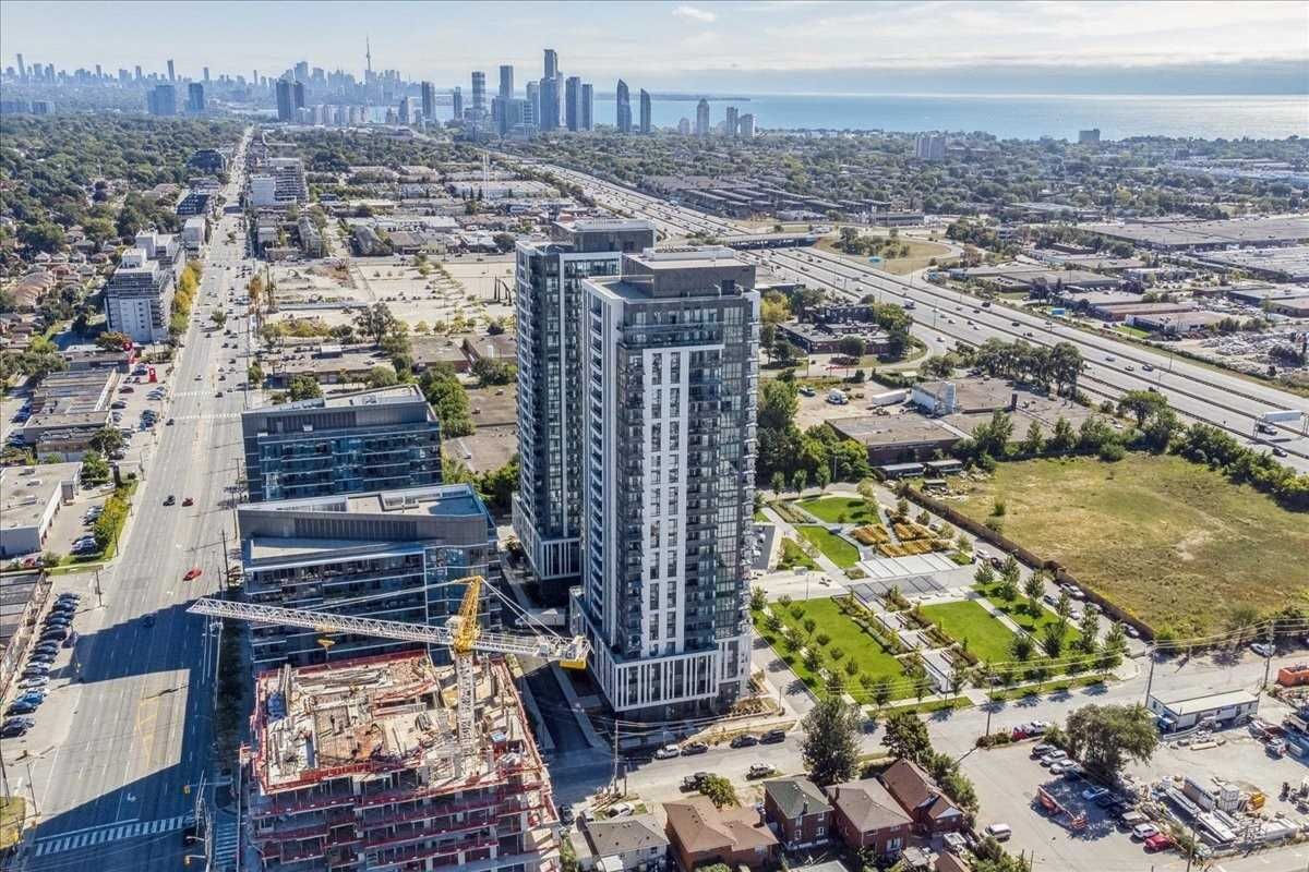 Bright, Modern & Stunning 2 Bed, 2 Bath End-Unit In An Unbeatable Location! This Spacious, Sun-Filled Unit Features 9 Ft Ceiling, 768 Sq Ft Of Living Space + A Massive 365 Sq Ft Wrap Around Balcony! Fresh & Neutral Colours Throughout W/ Quality Laminate Flooring, Upgraded Smart Lighting & Floor To Ceiling Windows. Kitchen Features Open Concept Layout W/ Full Size Appliances, Decor Subway Tile Backsplash & Breakfast Bar W/ Quartz Countertops. Primary Bedroom Is Spacious & Full Of Natural Light W/ Ensuite. 2nd Bedroom Is Also A Great Size And Even Accommodates A Small Work Desk W/ Full Size Closet. The Wrap Around Balcony Is Massive & Excellent For Entertaining Guests & Family As You Can Fit Multiple Chairs/Couches & Tables. This Unit Includes 1 Parking Spot & A Locker. State Of The Art Amenities Incl: Indoor Infinity Pool, Gym, Party Room, Sauna & Outdoor Terrace. Easy Access To Downtown Toronto, Park Lawn, Sherway Gardens, Costco 427 & 403. Steps To Transit, Shops & Lots Of Restaurants