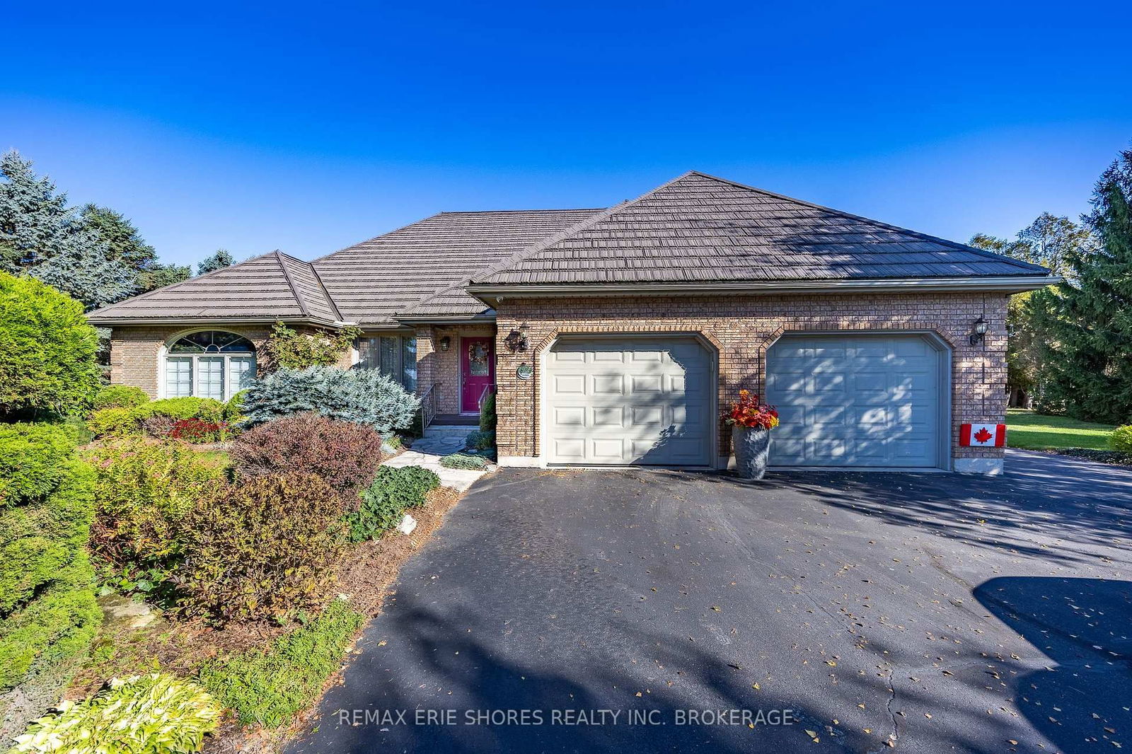 Welcome to 1545 Hwy 3 in Delhi a custom-built, solid brick ranch that combines elegance, space, and functionality, all set on a quiet, mature lot just under an acre. This peaceful area offers the perfect blend of country charm and convenience, making it highly attractive for buyers seeking both privacy and easy access to nearby towns, amenities, and scenic Norfolk County living. Step inside the grand two-storey foyer, where a curved oak staircase sets the tone for the refined spaces ahead. Formal living and dining rooms are elegantly divided by classic white columns, while the chefs kitchen is sure to impress with loads of cabinetry, granite counters, island, backsplash, and desk space. Enjoy your morning cup of coffee in the large eating/breakfast nook while admiring your private manicured backyard. The family room is perfect for gatherings, featuring a cozy gas fireplace, and access to the sunroom. The main floor includes a spacious primary suite with a walk-in closet and 4-piece ensuite, a second bedroom/office, a 3-piece bath, and laundry. Upstairs, two more large bedrooms with double closets provide additional space. The basement offers incredible versatility: a full kitchen, rec room, games room, 3-piece bath, workshop, cold cellar, storage, and a walk-up to the outdoors. The basement could easily be used as a granny suite for those with extended family. Car enthusiasts and hobbyists will appreciate the attached double garage with insulated doors, drains, and hot/cold water taps. Don't miss the back patio featuring a salt water hot tub! A heated triple garage (42x26) and a heated workshop (24x36) with additional garage and lean-to is perfect for anyone looking for extra storage or to start a business! Both outbuildings also have water. A 14x10 garden shed, full sprinkler system, second sandpoint, and paved laneway complete this impressive package. If you're looking for a property that combines luxury, space, and peaceful surroundings, this is the one.