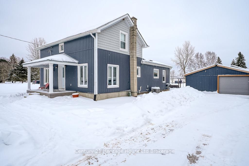 Charming and extensively updated 2 bedroom home, just 5 minutes from Tillsonburg! This picturesque property offers a blend of modern updates and country living on an acre of land, backing onto serene farmland. The exterior boasts fantastic curb appeal with newer siding, enhancing the home's inviting charm. As you enter, you're greeted by a spacious foyer. The front living room features updated vinyl flooring, leading to a wide staircase that takes you upstairs to two generously sized bedrooms. The stunning kitchen, fully renovated in 2025, boasts sleek white cabinetry, stylish slate-coloured countertops, and a modern backsplash, complemented by stainless steel appliances. Open to the dining area, it's the perfect space for family gatherings. A pocket door leads to the main floor's beautifully updated 5-piece bathroom (2022), and you'll also find the main floor laundry, making daily tasks a breeze. Enjoy the bright sunroom, featuring newer windows that provide a peaceful view of the expansive 0.845-acre lot. The large double detached garage is a standout, heated and insulated for year-round use, and includes an attached gym/workshop space. Additional updates include a sump pump with a battery backup (2024), updated HVAC, and plumbing. This home offers the ideal combination of modern amenities and tranquil country charm, all while being just minutes from town. Don't miss your chance to own this beautifully updated property!