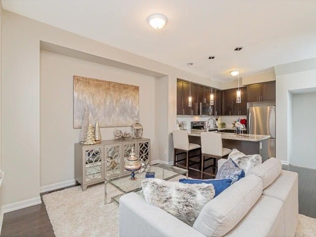 Come Home For The Holidays! This 1357 Square Foot, Aberfoyle Model Freehold Townhome Built By York Trafalgar Homes Offers 2 Bdrms & 3 Bath. Gorgeous Hrdwd Floors & 9Ft Ceiling On Main Level. Beautiful Gourmet Kitchen W/ Granite Counter, Brand New Faucet & Breakfast Bar, Modern Backsplash And Stainless Steel Appliances. Large Master Bedroom With His & Her Closets & 4 Piece Ensuite. Professionally Painted In Neutral Grey With Upgrade California Shutters.