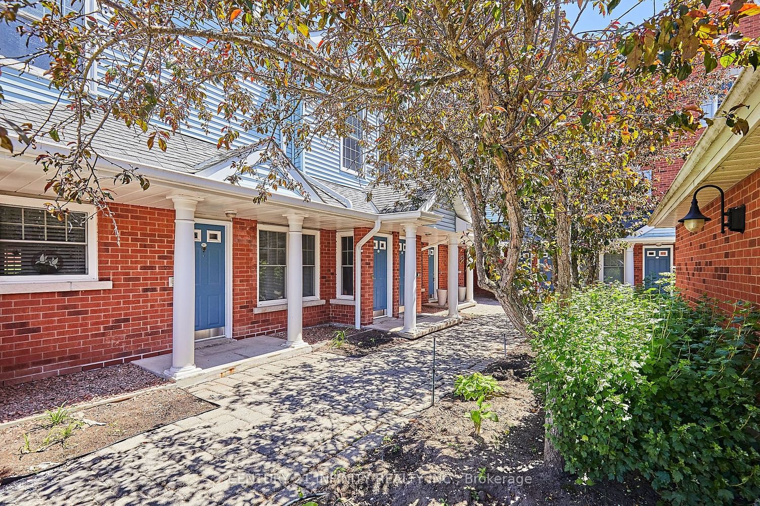 Highly sought after Ground Floor 2 Bedroom Bungalow unit In lovely Parkwood Village. 843 Sq Ft. Open Concept Living/Dining area has Patio Doors opening to an exclusive Southern exposure Garden Terrace backing onto Black Creek Ravine. BBQ allowed. Front Door opens to the Courtyard. Ceramic tiled entrance way. Neutral paint throughout, Laminate in living/dining rm, Vinyl Floor in kitchen and bath. Large Primary Bedroom with southern exposure, Semi-En Suite 4 Pc bathroom, & walk-in closet. 2nd Bedroom or office has full size window and double closet. Galley Kitchen with lots of counter space and cupboards. En-suite Laundry. Walking distance to parks, schools, restaurants and new shopping centre at Trulls & Hwy 2! Easy commuting with nearby Durham/GO transit, and HWY 401/407. Beautifully landscaped grounds to enjoy, and no grass to cut or snow to shovel!