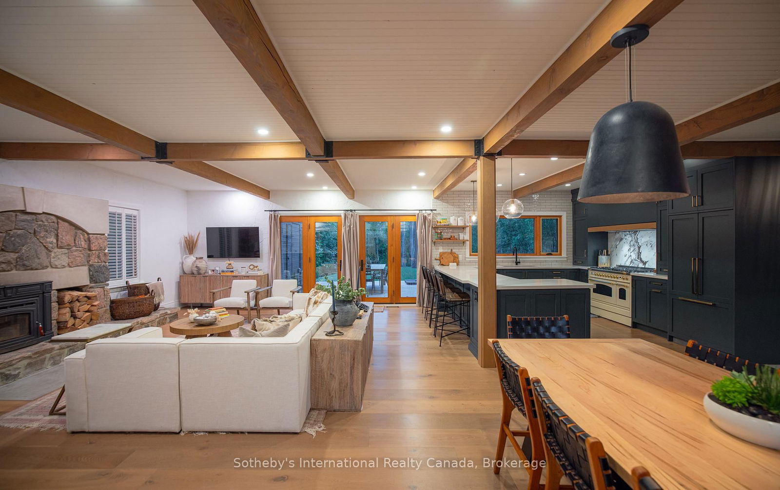 Welcome to the ultimate four-season retreat in the heart of Craigleith. Completely reimagined in 2021, this Tyrolean-style chalet was taken back to the studs and rebuilt as a sophisticated modern escape, thoughtfully designed for both weekenders and full-time mountain lovers. With accommodations for 12+ guests, it's the perfect place for family gatherings or entertaining friends after a day on the slopes. Ideally positioned just minutes from private ski clubs, Blue Mountain Village, the Georgian Trail, and your own private community beach, the location is second to none. At the heart of the main level is a stunning custom kitchen by Royal Classic Kitchens, designed for seamless function and flow. Outfitted with quartz countertops, Italian tile, premium appliances, sleek cabinetry, and abundant storage, it caters beautifully to everyday living and elevated entertaining alike. The adjoining dining area offers seating for 12-ideal for lively après dinners-while a custom wet bar with beverage and keg fridges takes entertaining to the next level. The oversized family room, anchored by a dramatic wood-burning fireplace, provides a warm and welcoming focal point for gatherings. From here, walk out to a sunny, south-facing deck featuring a hot tub and generous custom storage-perfect for stowing all your seasonal gear. A stylish mudroom with ski storage and a convenient powder room completes this level with both practicality and polish. Upstairs, a dedicated kids' play zone complements four spacious bedrooms and two modern bathrooms (one is a primary ensuite) with custom finishes and heated floors, while a secret bookshelf door cleverly conceals a whimsical bunk room. Set on a large private lot along one of Craigleith's most coveted streets, this exceptional property blends contemporary luxury with timeless alpine character-ideal as a weekend escape or a year-round home.