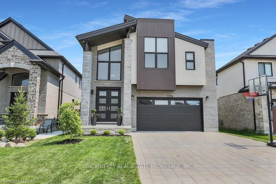 STUNNING FORMER MODEL HOME - GORGEOUS CONTEMPORARY STEEL BLUE MODEL measures 3705 square feet of finished area, 2 storey, 4+1 bedrooms, 4.5 bathroom home is spectacular top to bottom! Located in the highly desirable Wickerson Hills community of Byron in London. The main floor features an open concept, a luxurious modern Kitchen with featured floor to ceiling wine rack, Beautiful Gas Fireplace, Huge black interior windows, and formal Dining area. The second floor is host to a large Primary Bedroom retreat, walk-in closet with a custom built in organizer by Nieman Market Design, and a luxury en-suite featuring in floor heating and a stand-alone tub. Three secondary bedrooms, main bath, and 3rd/4th Bedrooms feed to a shared jack and jill bath. Upgraded flooring throughout including in the beautifully finished basement! Just a short walk to skiing and many other great 4 season activities that Boler Mountain has to offer. Additional features include high end Fisher Paykel appliances, in cei