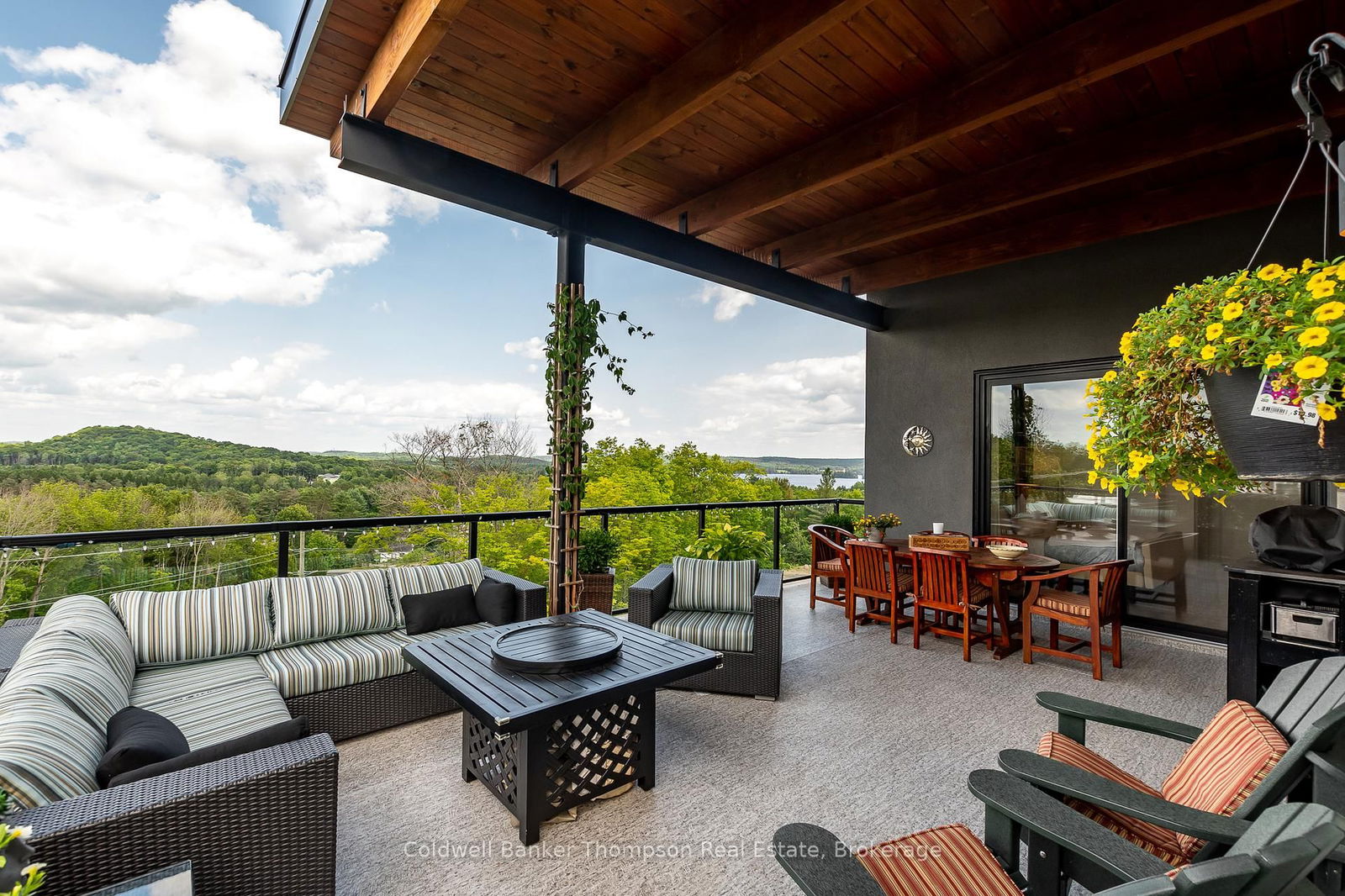 Welcome to The Alexander, an architecturally striking condo building by Greystone (2022), built with ICF construction for enhanced efficiency. This sought-after corner penthouse is truly one of a kind, offering soaring ceilings, over 350 sq ft of bonus loft space, warm timber beam accents, and expansive architectural windows that flood the home with natural light. The loft offers incredible flexibility, ideal as a studio, office, guest space, or cozy retreat. The spacious foyer opens into an inviting open-concept kitchen, dining, and living area. Designed for both function and beauty, the chefs kitchen features quartz countertops, a generous island, built-in oven & microwave, induction cooktop, and a full suite of matching stainless appliances. The living room is anchored by an electric fireplace with shiplap detailing, while the dining area opens through oversized sliding doors to a nearly 400 sq ft private terrace. With lake views and a stunning display of foliage during the autumn, the terrace also includes two natural gas hookups, ideal for both a BBQ and a fire table. The serene primary suite enjoys its own access to the terrace, a walk-in closet, and a private spa-inspired 3-pc ensuite. A 4-pc guest bath and convenient laundry/utility room complete the main floor. Residents of The Alexander enjoy thoughtful amenities including underground parking, pickleball courts, a self-serve car wash, an outdoor lounge, a main-floor community room, and secure building access with 'smart' automation. With natural gas heat, municipal services, and fibre optic internet included in the condo fees, this penthouse offers an effortless lifestyle where comfort and convenience come naturally.