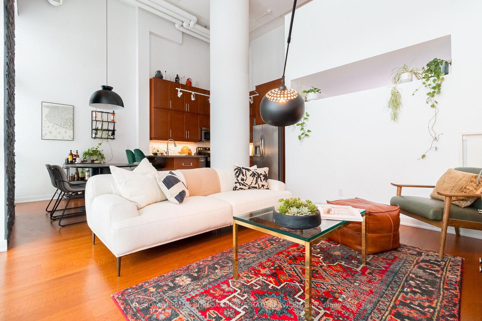 Thanks to its industrial past, this stylish hard loft offers everything you need: a spacious two-level layout with two bedrooms, two full bathrooms, and a large den, across from Kenway Park. Located off Bloor Street West in Etobicoke, the historic Network Lofts were transformed from a former Bell Canada office. This unique layout provides 1,429 sq. ft. of sunlit living space. Although on the first floor, the loft is elevated above ground level for privacy, eliminating the daily elevator trip with your pet. Enter the grand great room with stunning 16-foot ceilings in this open-concept area, featuring generous wall space for your art collection. The style flows into the chic dining space, accented by a captivating natural stone wall façade, while double-height windows flood the area with light. The primary bedroom serves as a sanctuary with a walk-in closet, storage wall unit, a three-piece ensuite bath, and a cozy sitting nook offering breathtaking park viewsa serene escape from the daily hustle. The second bedroom is generously sized, with ample closet space and outdoor views. The kitchen boasts tall cabinetry and sleek stone countertops, a modern subway tile backsplash, and a tidy under-mounted stainless steel sink. The breakfast bar is ideal for casual meals. A dedicated laundry room includes a full-sized washer, dryer, and sink. Two full bathrooms, one on each level, are also available. Conveniently located near the owned storage locker, gym, hot tub, and steam room, the loft includes one assigned underground parking space and plenty of visitor parking. The building features a rooftop terrace with BBQs, a party room, and 24/7 concierge service. This condo combines tranquillity with urban vibrancy, just minutes from Islington Subway Station, shopping, dining, and parks. This property offers a stylish living experience in an appealing locationdont miss out. Explore the Network Lofts, now is the time to plan your next move!