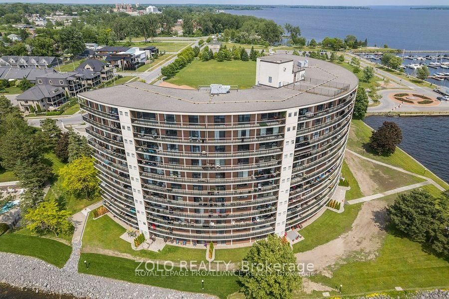 Experience refined waterfront living in this exceptional 1,380 sq. ft. condominium overlooking the Bay of Quinte, Bay Bridge, Meyers Pier, and the marina. Designed for discerning professionals, this residence blends modern luxury, low-maintenance living, and inspiring views-all just steps from downtown Belleville's best restaurants, boutiques, and theatres.The spacious open-concept layout is ideal for both entertaining and everyday comfort, featuring a stunning 40-foot wraparound balcony accessible from the living room and primary suite-perfect for morning coffee or unwinding after a busy day.The gourmet kitchen impresses with elegant custom cabinetry, gleaming granite countertops, seamlessly flowing into the bright living and dining areas. The primary suite offers balcony access, a generous walk-in closet, and a spa-inspired ensuite bath. A versatile second bedroom or office provides flexibility for guests or remote work. Enjoy exclusive, resort-style amenities tailored for an upscale lifestyle: 24/7 concierge and security, a heated saltwater pool, sauna, fully equipped fitness center, party/meeting rooms, library/games room, and tennis court. Private storage ensures convenience and peace of mind. The HVAC system was replaced in 2024 to further put at ease there will be no costly repairs in the foreseeable future. Perfectly located near the waterfront trails of Janet Forrester Park, close to the hospital and three marinas, this address delivers the ultimate in balance-professional polish meets relaxed coastal living. Whether entertaining clients, hosting friends, or simply enjoying the sunset from your balcony, this luxury condo redefines the art of living well.