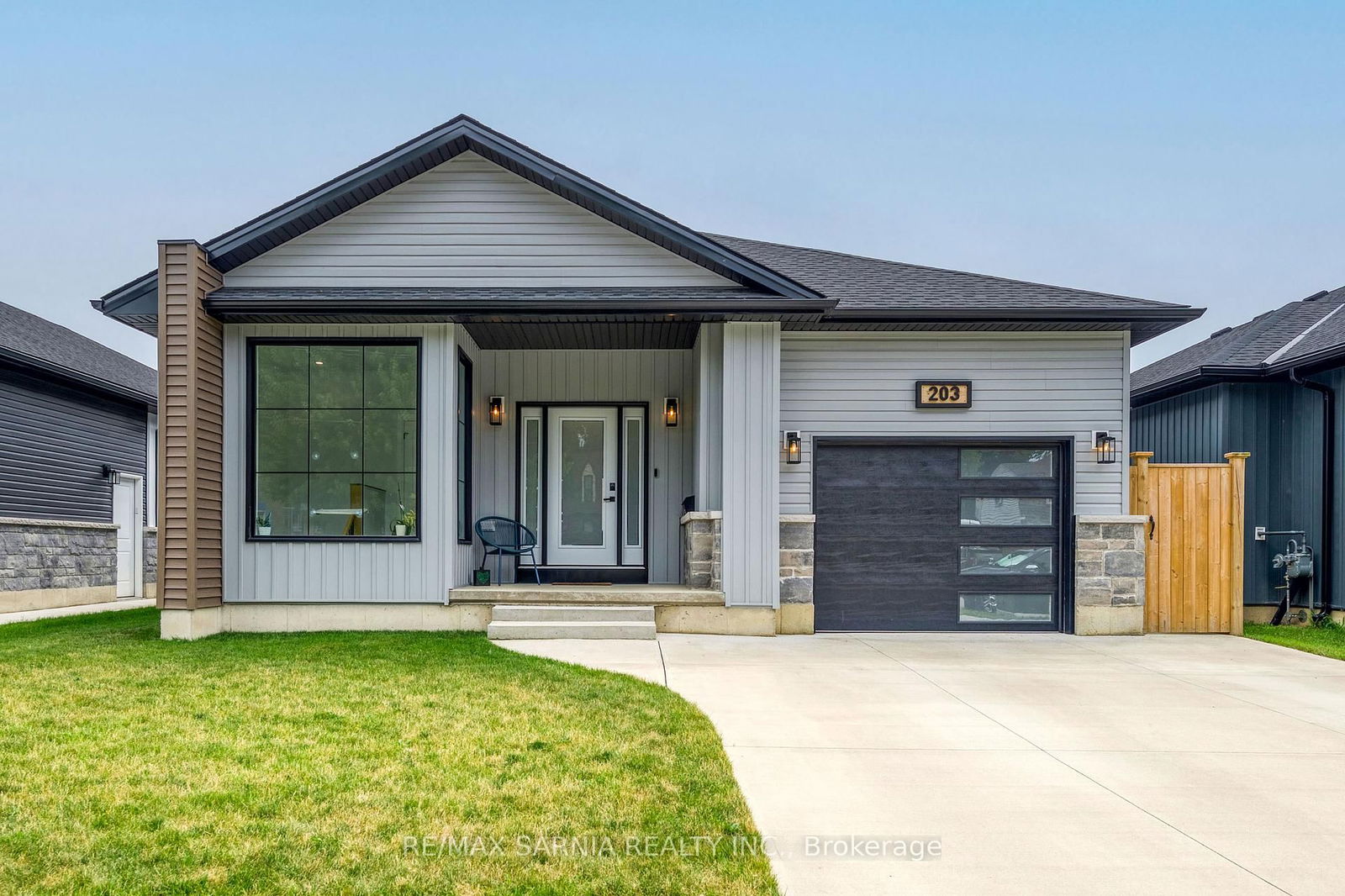 Welcome to 203 Essex St., Sarnia a modern detached bungalow built in 2021, offering style, functionality, and versatility. This beautifully maintained home features 2 spacious bedrooms on the main floor and 2 additional bedrooms in the fully finished basement, along with 3 full bathrooms throughout. The open-concept main level is bright and inviting, with contemporary finishes and plenty of natural light. The lower level includes a rough-in for a wet bar or second kitchen, making it ideal for a future in-law suite or income potential. Enjoy the convenience of an attached single-car garage and a fully fenced backyard perfect for pets, children, or outdoor entertaining. Located just minutes from downtown Sarnia's shops, restaurants, parks, and waterfront, this home combines modern comfort with urban accessibility. Don't miss your chance to own this nearly new home!