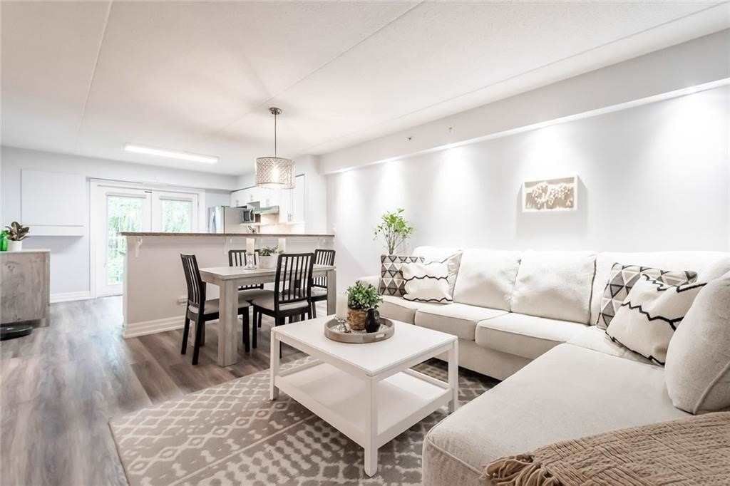 Renovated In 2021, 900 Sq Ft Main Floor Open Concept 2 Bedroom Condo With Serene Green Space Terrace Views. Amazing Location In Orchard Uptown, Short Walk To Restaurants, Shopping And Quick Access To Go, Qew Or 407. Pot Lights Galore, White Shaker Kitchen Cabinets With Granite Counters And Stone Backsplash, Stainless Steel Fridge, Stove, Venting Fan & Dishwasher. Stack Washer/Dryer, Closet Organizers In Br Closets. Locker And 1 Underground Parking Space. On-Site Amenities; Party Room, Fitness Facilities. Rsa