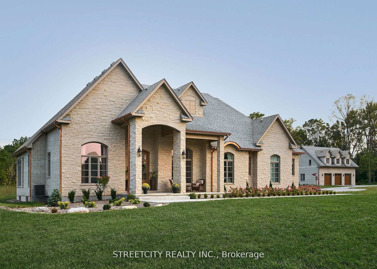 Endless possibilities await in this unique Custom Built Estate. Countryside Living on 6.9 acres while being in the City, minutes from Hyde Park Shopping Centre and Western University. This Architectural masterpiece blends Old-World charm with modern amenities and includes a private guest house- perfect for visiting family and friends or rental. The main residence offers excellent potential for multi-generational living, featuring a recreation room, bar/kitchen, two additional bedrooms, a full bath, and laundry facilities. The inviting entrance leads to an open-concept layout, featuring 10-foot ceilings and combined with in-floor heating on both levels, enhances unparalleled luxury. The elongated dining room is perfect for gatherings, and a cozy gas firplace with a stone mantle adds warmth throughout. A barrel ceiling extends from the great room to the covered rear porch, blending indoor and outdoor living. The chef inspired kitchen is anchored by a custom stone-cast range hood and 48-inch professional gas stove offering 8 burners and 2 ovens. Patio doors from the dinette and a pass through window from the pantry, complete with full refrigerator and sink, leads to the back porch dining area. Secondary bedrooms feature custom closets and private ensuites for comfort and privacy. This home offers over 6573 sq ft of finished living space. The outdoor space is ideal for entertaining with stone gas fireplace and covered porch overlooking the 18x40 in ground pool with sun ledge. This home offers luxury, comfort and endless possibilities for family living.