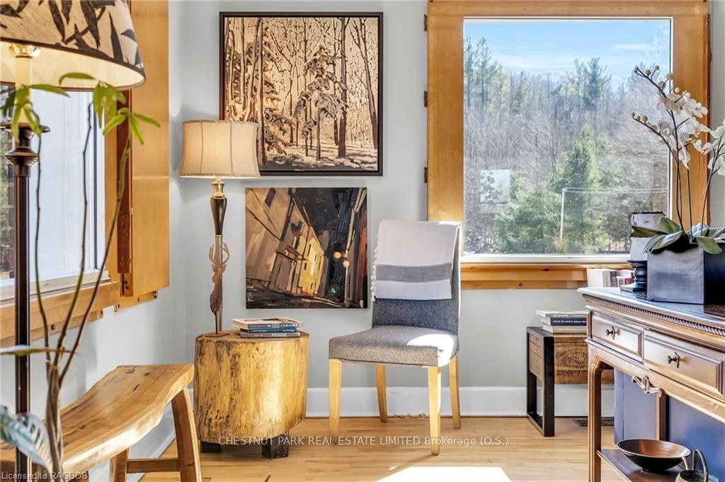 DEVONWOOD FARM: Your Dream Lifestyle Property! Situated on approximately 50 picturesque acres with breathtaking views, this country estate seamlessly blends charm, modern comfort, and rural living. The heart of the property is a solid 50'x60' barn offering hydro & water, multi-level rustic spaces plus a finished loft. This renewed barn invites creativity and family gatherings. Zoning offers many potential uses such as BNB, Home industry, Home occupation, Farming, Riding & boarding stables, etc. The tastefully updated 4 bedroom, 2 bath 3000+ sq ft home boasts spacious living with a generous kitchen, an elegant GREAT room with fireplace and combined living/dining space. Plus attached garage with dog wash! Relax at the end of the day in your enclosed hot tub area. The 30'x60' workshop is perfect for mechanics, hobbyists or entrepreneurs and comes equipped with hydro, hot & cold water, a hydraulic lift, ample work area, tool storage & wood stove. Host overnight guests in the beautifully restored "Airstream" nestled in the woods complete with hydro, enclosed outdoor living & dining rooms plus BBQ and a firepit for smores. Explore magical trails, forest cathedral, and dine "al fresco" in the apple orchard. Play 3 holes of rough golf on your very own course. Approx 20 acres of workable land provides opportunities for your green thumb plus a bonus spring-fed pond adds to the tranquil environment. A MUST SEE Hobby Farm in the heart of Grey County; close to the Golden Horseshoe, Beaver Valley & McCullough Lake. Fibre internet just installed at end of driveway! So much $$ spent on upgrades throughout the property. This Award-Winning landscape Artist's residence offers an inspiring lifestyle & healthy dose of nature therapy.