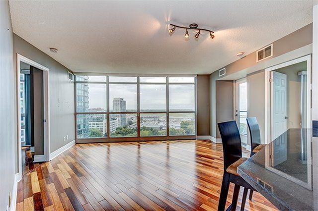 Conveniently Located With Stunning Lake Views! This 2 Bedroom Suite Has It All! Both Bedrooms Have Large Windows & Lake Views. The Open Concept, Functional Layout Is Bathed In Sunlight All Day! This Upgraded Unit Has Hardwood Throughout. Kitchen W/New Granite Counter Tops And Stainless, Roller Blinds Installed. Includes Parking/Locker. Building Has Phenomenal Amenities & Steps To Waterfront. T.T.C. At Front Door!