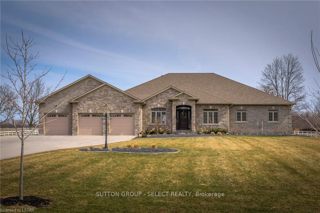 Modern country living at its finest! This gorgeous property is on 1.33 acres & minutes to London with access to all major areas: 24km to LHSC, 15km to N London & 12km to the London Airport. You will be amazed by this 3147 sqft custom home. The interior boasts 10' ceilings, 8' doors, hand scraped hardwood, Italian porcelain tile, granite in kitchen & baths & a speaker system throughout the home & rear exterior. With 4 bedrooms it also includes a front office, formal sitting room & a beautiful entry with a coffered ceiling. The kitchen is absolutely stunning with maple cabinets, travertine backsplash, a massive island, gas stove & double oven. Everything was done with careful thought: back up generator, gravity feed septic in the front yard & 200 amp panel. The exterior is beautifully landscaped and includes 360 lighting, stamped concrete, gas fire pit, 20' x 22' shop and a covered concrete patio. Filled with impeccable finishes and quality products this home is truly a gem.