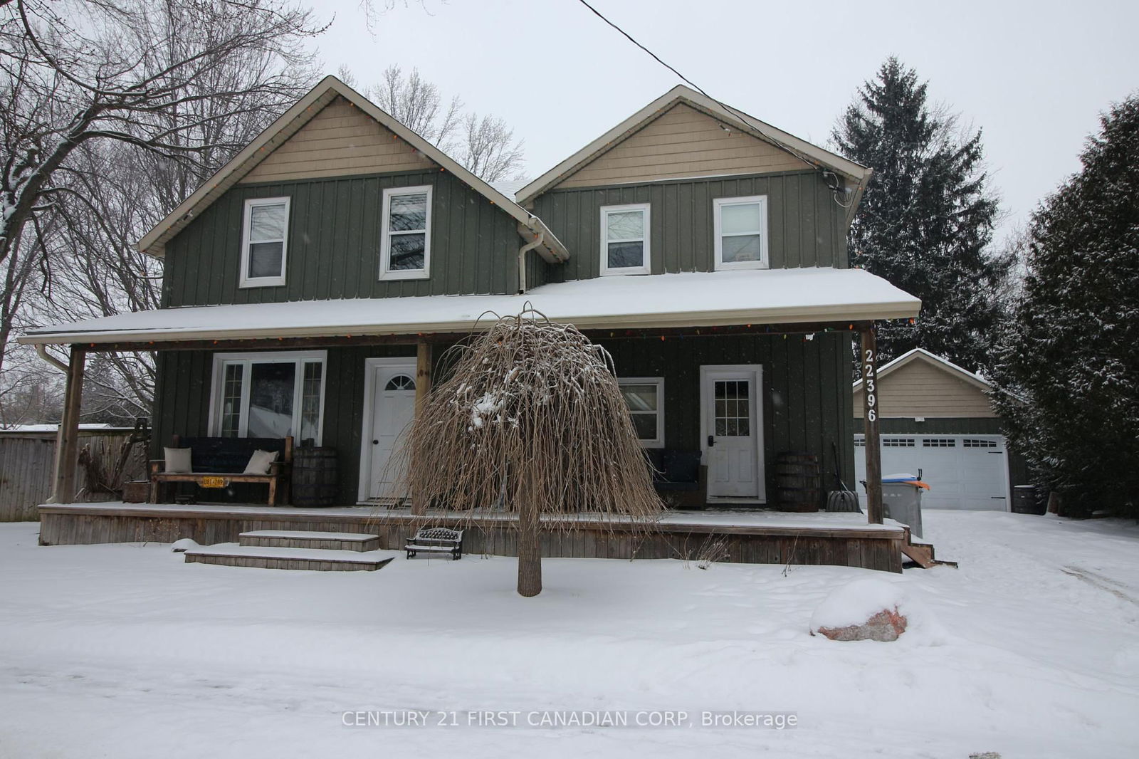 Welcome to 22396 Adelaide Rd, a wonderful home located on a large lot in the quaint village of Mount Brydges. Watch the world go by via your extra-large front porch. This charming family home provides multiple options and offers plenty of space for a growing family. On the main floor youll find a generous living room, separate dining room with patio door access leading to the outdoors and an updated kitchen. The kitchen offers a centre island and pass-thru to the breakfast area that overlooks and opens to the gorgeous private yard and spacious deck with a gas BBQ - fabulous for entertaining friends and family, or enjoying the serenity of the surroundings from the hot tub. Upstairs offers 3 large bedrooms including an open concept loft area ideal for a 4th bedroom, plus a den or walk in closet. Rounding out the home is a finished family room in the lower level with additional space for an office or possible 5th bedroom plus plenty of unfinished space for storage. Updates include a stamped concrete double drive with parking for 6 cars and an impressive detached 24 X 30 (2019) garage. Features include 16 X 8 double door with 10-foot ceilings, gas heat, hydro (100 amps) and drop-down stairs to the attic, a great work shop opportunity. An excellent property in a lovely location with several amenities nearby, just 10 minutes to Strathroy or Komoka and 30 minutes to London.
