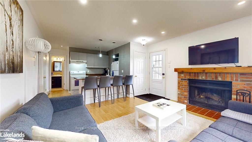 SEASONAL RENTAL, Spring-Summer only, Flexible Dates. This hidden gem is set amongst the trees in a quiet condo community. Bright and spacious - 23 Dawson Drive #101 contains 2 well-appointed & spacious bedrooms, 2 full bathrooms and spans nearly 800 square feet. The balcony off the primary bedroom/living room is a real treat. You'll be surrounded by trees and the soothing sounds of birds chirping. BBQ on deck, enjoy your morning sip of coffee outside, along with cocktails and sunsets! Spacious living area equipped with a sofa, TV and wood burning fireplace. Ensuite laundry. Kitchen pantry. Immaculately maintained. Recent upgrades include: electronic thermostats, portable A/C units, pot lights in the living room and freshly painted. The condo offers incredible value. Well-located, close to grocery stores, cafes, restaurants, live music venues, walking trails, Golf Courses and the Georgian Trail. Just a quick drive to Scandinave Spa and Blue Mountain Village. Live your best life in Collingwood - with a plethora of activities available from your doorstep. Fully furnished rental - well equipped with plates, cutlery, Keurig Coffee Maker, Air Frier and standard appliances. Rental rate does not include utilities (water, sewer, hydro, water heater, internet). Exit cleaning fee applies. Damage deposit required, as well as Tenant Insurance.