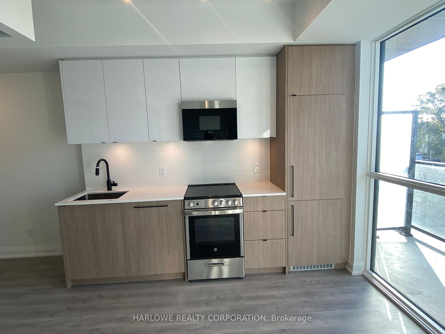 9' Ceilings, Wide Plank Laminate Flooring Throughout. Quartz Kitchen Counter-Top. S/S Appliances, Fridge, Stove, Oven, Dishwasher, Microwave. Stacked W/D. Upgraded Kitchen Finishes.