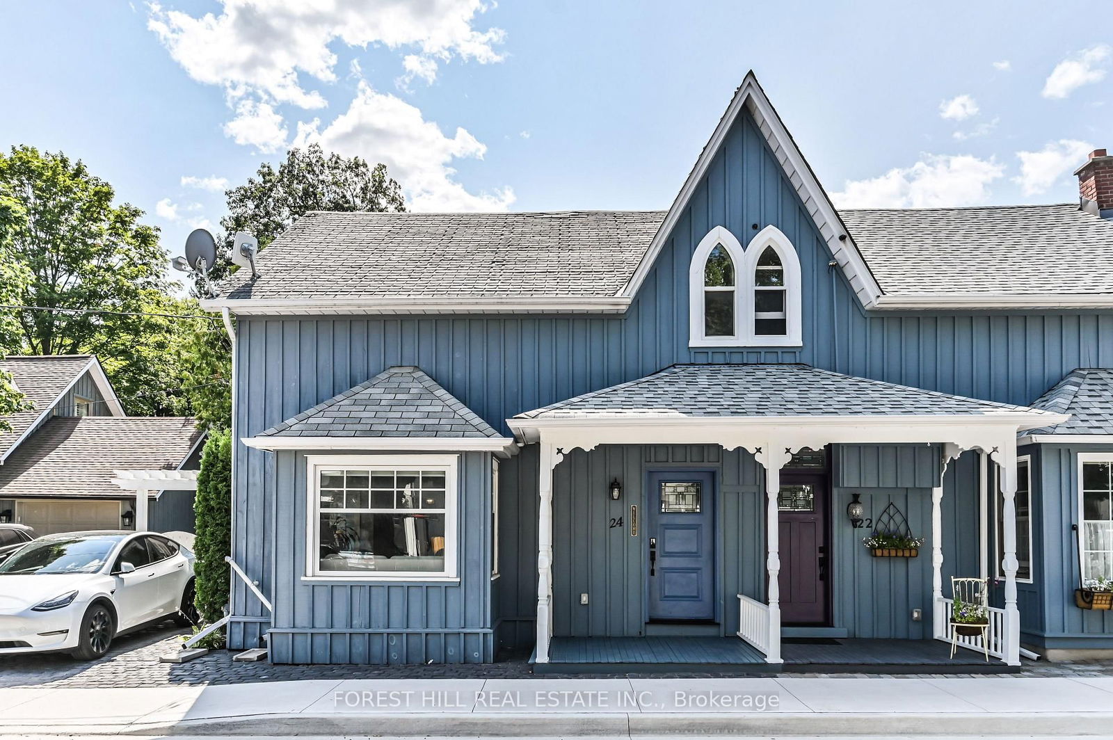 Beautifully updated semi-detached home in the heart of Stouffville, with renovation completed in 2017. Features a stunning kitchen with cathedral ceilings, custom cabinetry, quartz counters, stainless steel appliances, and a large island with ample storage. Elegant hardwood floors throughout the main level, with 3 bedrooms and 2 renovated bathrooms, including a stylish upstairs bath. The primary bedroom offers large custom built-in storage. Basement is waterproofed and equipped with a sump pump. Efficient radiant boiler heating, tankless water heater and wall-mounted A/C unit on the main level.Rarely found oversized L-shaped lot for a semi-detached, offering a peaceful backyard oasis with a large stone patio, tranquil pond, and a powered 12' x 16' workshop/barn. Private driveway with Tesla charger included.Unbeatable location just a short walk to the GO Station and historic Main Street, with easy access to parks, schools, shops, and restaurants.Perfect for commuters and those who love being close to everything the town has to offer. Some exterior changes may be subject to municipal review. Buyer to verify with the Town of Whitchurch-Stouffville.
