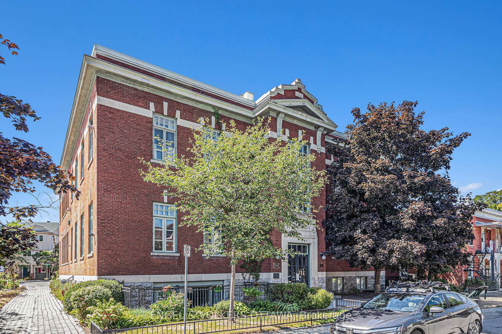 Welcome to 24 Springfield affectionately known as The Lofts. This one-of-a-kind residence is truly unmatched, not just in the building, but in the entire city. Spanning an impressive 1,550 sq. ft., this open-concept, loft-style condo offers a rare blend of historic character and modern comfort. Originally built in 1910 as Ecole St. Charles, the building retains its historic charm, with the original name proudly displayed above the main entrance. Converted to stylish condos in 1997, it now offers a distinctive urban lifestyle steeped in history. Inside this exceptional unit, you'll be greeted by six stunning 8-foot windows with remote-controlled custom blinds, rich hardwood floors, exposed floor joists, and a striking floor-to-ceiling red brick feature wall. As the largest unit in the building and the only one with two owned parking spaces it offers unparalleled convenience and exclusivity. Residents enjoy access to a shared rooftop patio with BBQ and seating, perfect for summer evenings. Located just steps from an array of acclaimed restaurants, coffee shops, ice cream parlours, grocery stores, parks, and scenic bike paths, this home delivers both charm and walkable city living. Don't miss the chance to own a truly irreplaceable piece of Ottawa's history. Please Note: This property may contain active audio and/or video recording devices. By entering the home, you acknowledge and consent to the possibility of being recorded.
