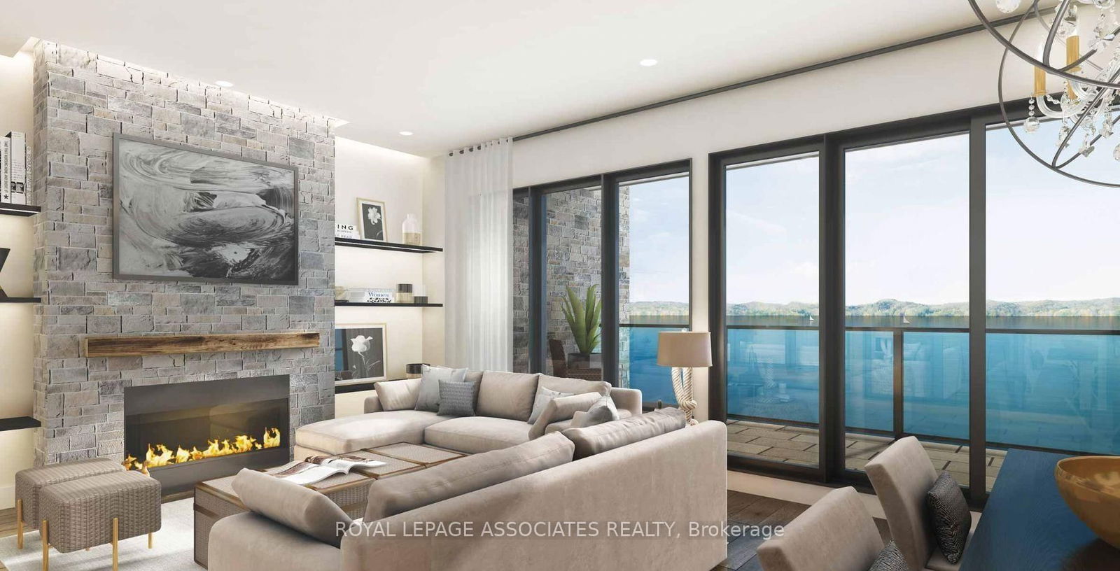Welcome to Huntsvilles newest waterfront condo! This stunning 2-bedroom, 2.5-bathroom condo offers the perfect blend of luxury, comfort, and natural beauty in the heart of Huntsville, Ontario. Set along the tranquil shores of Fairy Lake, this modern residence features floor-to-ceiling glass that frames panoramic views of the lake and surrounding forested landscape, flooding the space with natural light year-round. Enjoy seamless indoor-outdoor living with a private balcony accented by sleek glass railings, perfect for morning coffees or sunset unwinding. The open-concept living space is anchored by a contemporary fireplace, adding warmth and sophistication to your lakeside retreat.The kitchen and bathrooms boast of high-end finishes, complementing the condos clean, modern design. Residents enjoy access to a state-of-the-art fitness centre and private beach. The buildings location offers unbeatable convenience just off of Highway 60, minutes from downtown Huntsville, close to golf courses and the natural wonders of Algonquin and Arrowhead Provincial Parks.
