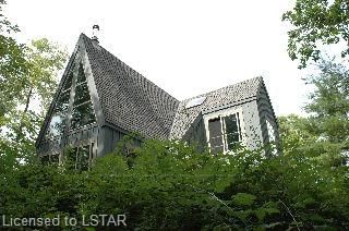 A spectacular custom-built Timber Frame home set on one of the most beautiful areas of Carolinian in Southwestern Ontario and Surrounded by 75 acres of conservation land overlooking the Ausable River Valley. The design is a unique open concept T-Shape offering panoramic views from large windows and glass doors. A 4 level deck system joins the house, 2 timber gazebos, a detached garage and offer fabulous views of the forest and river 100 feet below. Situated on 4.6 acres of pure privacy just 15 minutes from Grand Bend. All meas are approximate.
