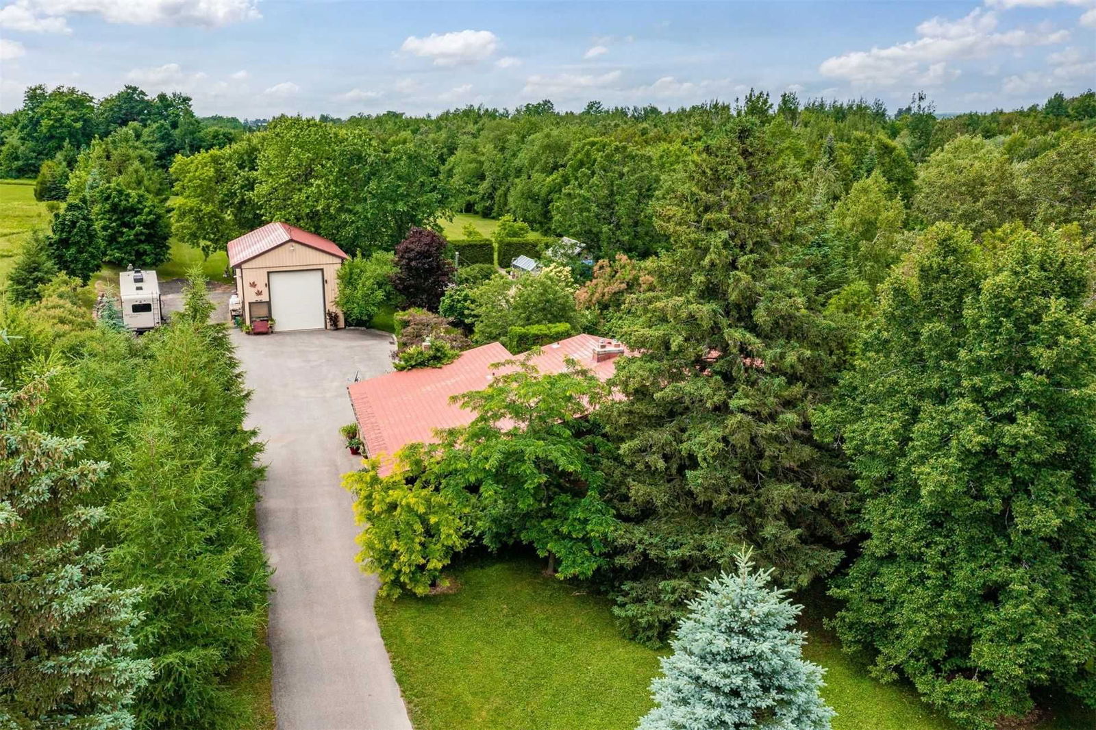 Custom Built All Brick Unique Bungalow Sits On A Picturesque 10.83 Acres W/Extensive Perennial Gardens, Veggie Garden & Mature Trees. Detached Heated 22'X42' Garage/Workshop W/Mezzanine Is Perfect For The Handyman In The Family. Quality Craftmanship Is Evident Throughout. Vaulted Ceilings W/Wood Beams & Port Credit Stone Flrs Flow Throughout The Home. Updated Eat-In Kitch W/Lrg Picture Window O/L Your Very Own Botanical Garden. Spacious Family Rm W/Floor To