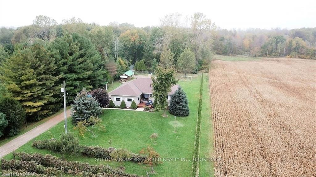 This country gem is one of a kind & 30 Minutes from London....Get away from it all best describes This serene and unique property is a dream come true to call home. This raised bungalow was built in 2003 on 6.26 acres of land. The property features a 2+2 bedroom and two-bathroom house with spacious yet cozy living room boasting high ceiling and wood burning fireplace. Main floor bedrooms showcase reclaimed heart pine flooring. The New Lower Level is freshly finished with new flooring, Trim, Doors, 8' ceiling, large recroom/games room with electric napoleon fireplace. 2 bedrooms and a bathroom featuring two-person shower. Ample storage all around the house, his and hers walk-in closets in the master bedroom and other closets throughout the main floor including laundry. Lower level has a spacious utility room including lockable gun room, cold room. There are two outdoor living areas: a front porch (12 x 10 feet) overlooking a vineyard of sweet Concord and a large rear deck (23 x 14 feet)