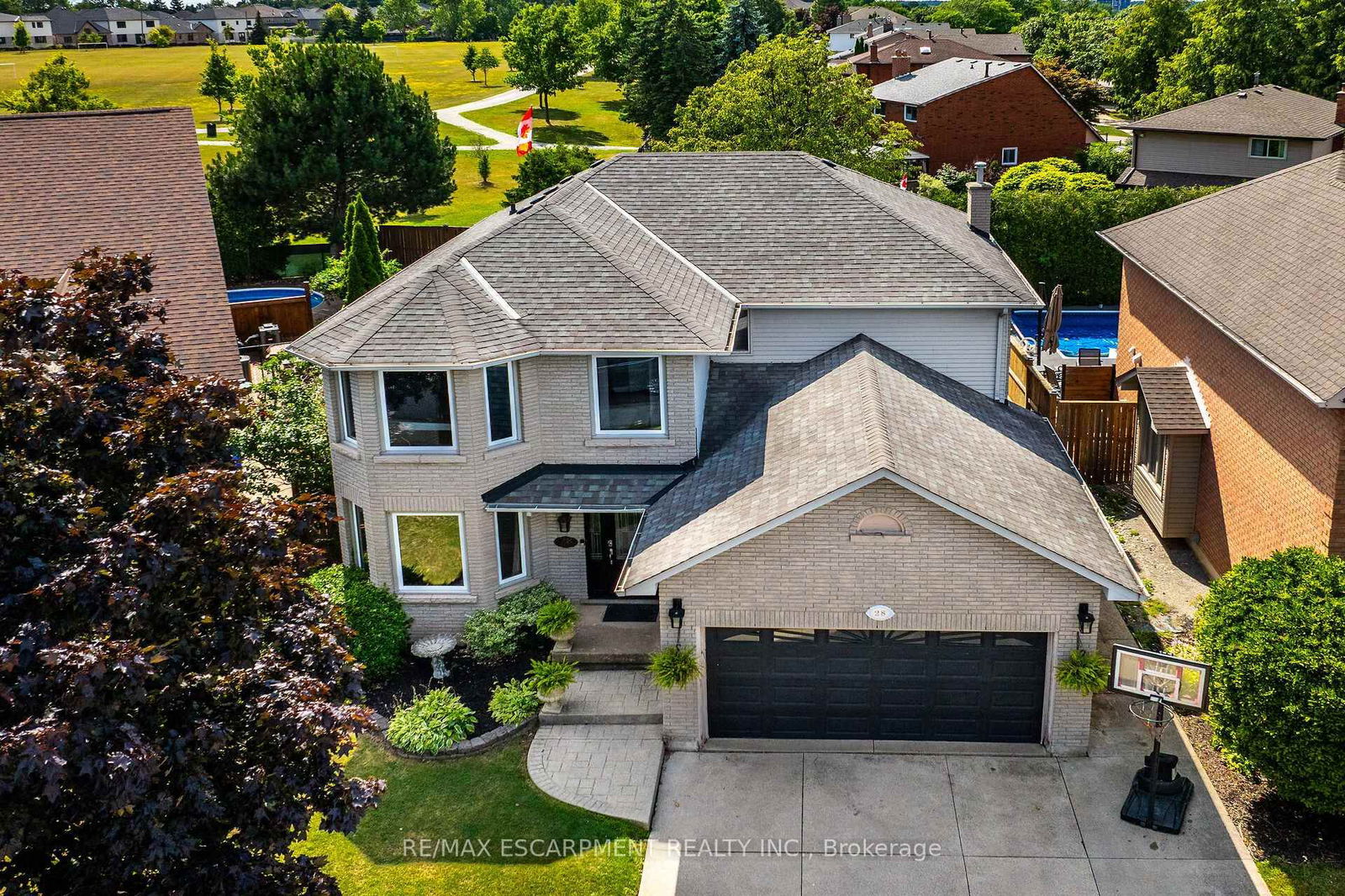 Welcome to 28 Dolman Street, SC. Gorgeous massive family home is situated on desirable Stoney Creek Mountain backing on huge Maplewood Park. Home features over 2900 sqf above grade, plus finished basement for entertainment and recreation. Upper level of this beauty features 4 spacious bedrooms, and 2 full bathrooms. Main grand entrance leads to spacious main floor with open concept kitchen, separate family room with fireplace, living room, dining room, and huge sun room that leads to your back yard oasis with pool, covered porch with hot tub, for enjoyment and entertainment of summer days/nights. Fully finished basement features humongous recreation room, and separate bedroom/den/gym with another full bathroom. Double car garage with inside entry through mud/laundry room, and driveway that fits up to 4 cars. Fabulous home is perfect for growing and large families with near by access to Red Hill and Linc, schools, shopping, trails and etc. This is must see home. RSA.