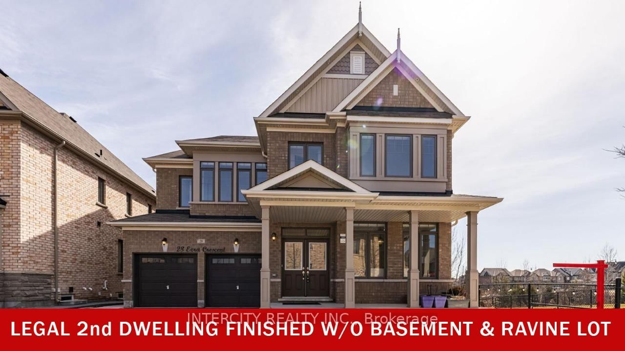 Welcome to 28 Ezra Cres., a true masterpiece of elegance and sophistication! Rare to find! Must See 5 + 3 bedrooms & 7 baths luxury home on Premium 50' Ravine-Lot home with finished walk-out basement as a 2nd swelling unit! Located on a quiet crescent in one of Brampton's most sought-after communities near Mount Pleasant GO station, this exquisite home offers approximately 5,200 Sq. Ft. of total living space. Featuring 5 spacious bedrooms and 4 bathrooms on the second floor, this home boasts an open-to-above family room with an electric fireplace and a remote-controlled zebra blind on the top window. Expensive windows provide breathtaking ravine views and abundant natural light. the gourmet kitchen is designed for both style and island. The legal walkout basement includes 3 bedrooms & 2 bathrooms and 1 bedroom unit with separate entrance. Located within walking distance to schools, bus stops, parks, trails and shopping plazas. This meticulously maintained home also includes central vacuum, A/C, indoor & outdoor pot lights and much more ! This exceptional home won't last long. Book your showing today!