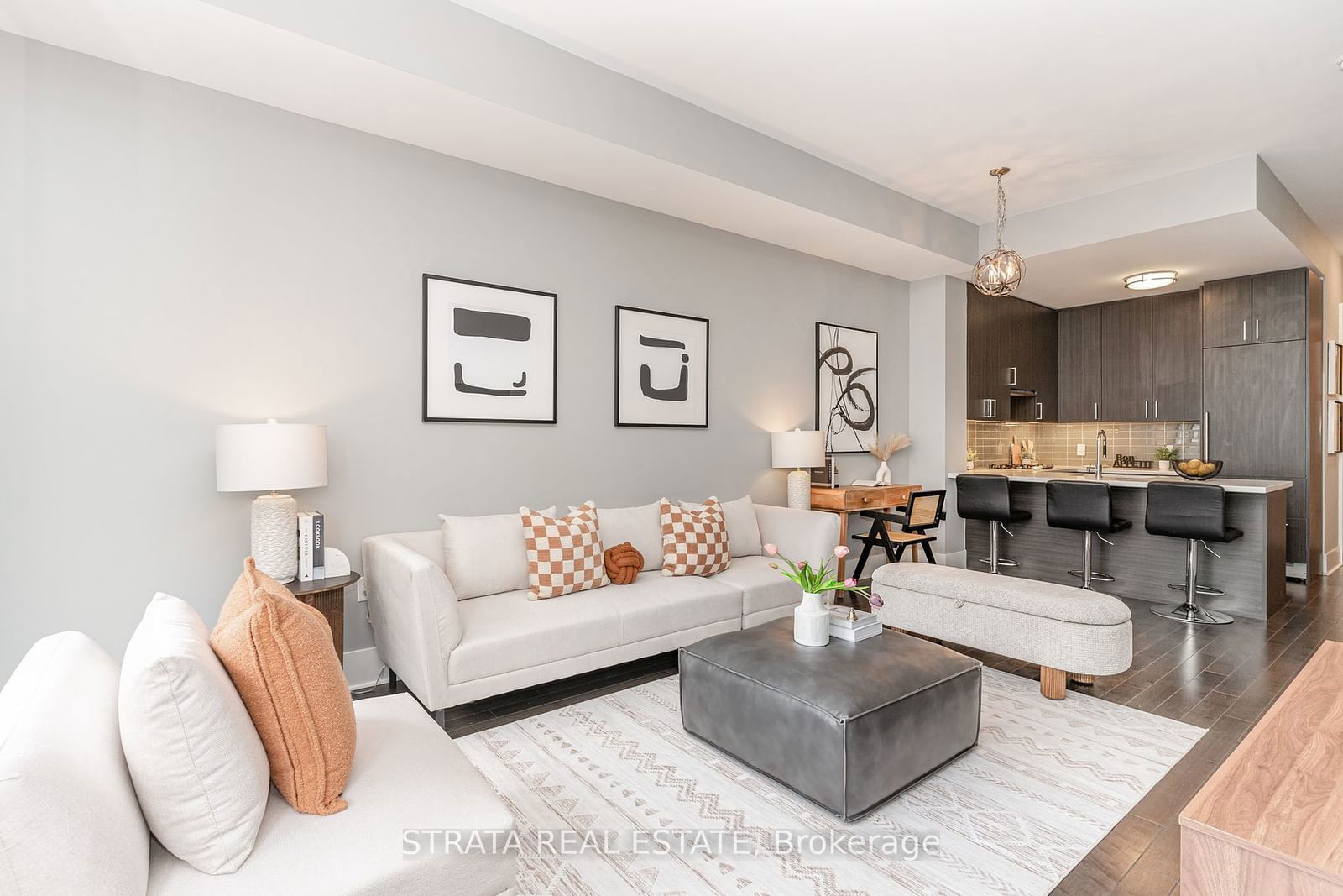 Welcome to luxury living at the prestigious Pier 27 waterfront condos. This stunning 1+den unit offers breathtaking south-west views of the water, creating a serene and picturesque living environment. With 775 square feet, this is one of the larger 1+den units available, featuring 10-foot high ceilings and floor-to-ceiling windows that enhance the spacious feel.The den can easily serve as a second bedroom or a home office, providing versatility to suit your lifestyle. Enjoy two full baths, ensuring convenience and comfort for you and your guests.The modern kitchen boasts extended upper cabinets, Caesarstone countertops, top-of-the-line Miele appliances, including a gas range, and a Sub-Zero fridge, making it a chef's dream. The hardwood flooring throughout adds a touch of elegance to the entire space. Mere steps to the Financial District, Transit, Union Station, parks, cafe's, shops, and restaurants. One parking space conveniently located next to the elevator and one locker included. Enjoy world class amenities and more!Don't miss the opportunity to own a piece of luxury at Pier 27, where every detail has been thoughtfully designed for upscale living.
